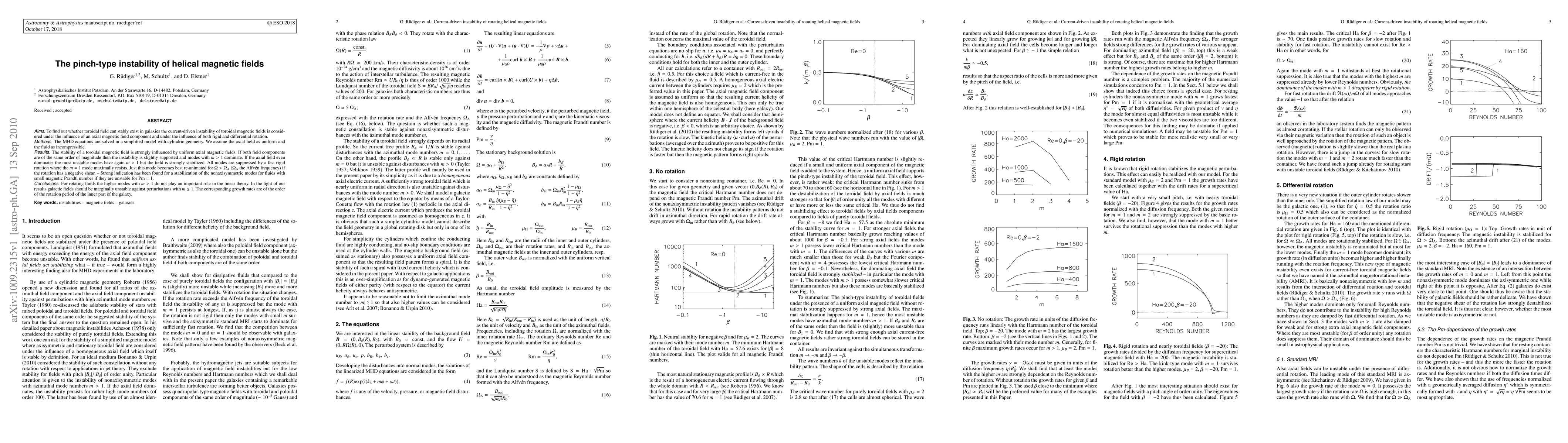 To find out whether toroidal field can stably exist in galaxies the current-driven instability of toroidal magnetic fields is considered under the influence of an axial magnetic field component and under the influence of both rigid and differential rotation. The MHD equations are solved in a simplified model with cylindric geometry. We assume the axial field as uniform and the fluid as incompressible. The stability of a toroidal magnetic field is strongly influenced by uniform axial magnetic fields. If both field components are of the same order of magnitude then the instability is slightly supported and modes with m>1 dominate. If the axial field even dominates the most unstable modes have again m>1 but the field is strongly stabilized. All modes are suppressed by a fast rigid rotation where the m=1 mode maximally resists. Just this mode becomes best re-animated for \Omega > \Omega^A (\Omega^A the Alfven frequency) if the rotation has a negative shear. -- Strong indication has been found for a stabilization of the nonaxisymmetric modes for fluids with small magnetic Prandtl number if they are unstable for Pm=1. For rotating fluids the higher modes with m>1 do not play an important role in the linear theory. In the light of our results galactic fields should be marginally unstable against perturbations with m<= 1. The corresponding growth rates are of the order of the rotation period of the inner part of the galaxy.