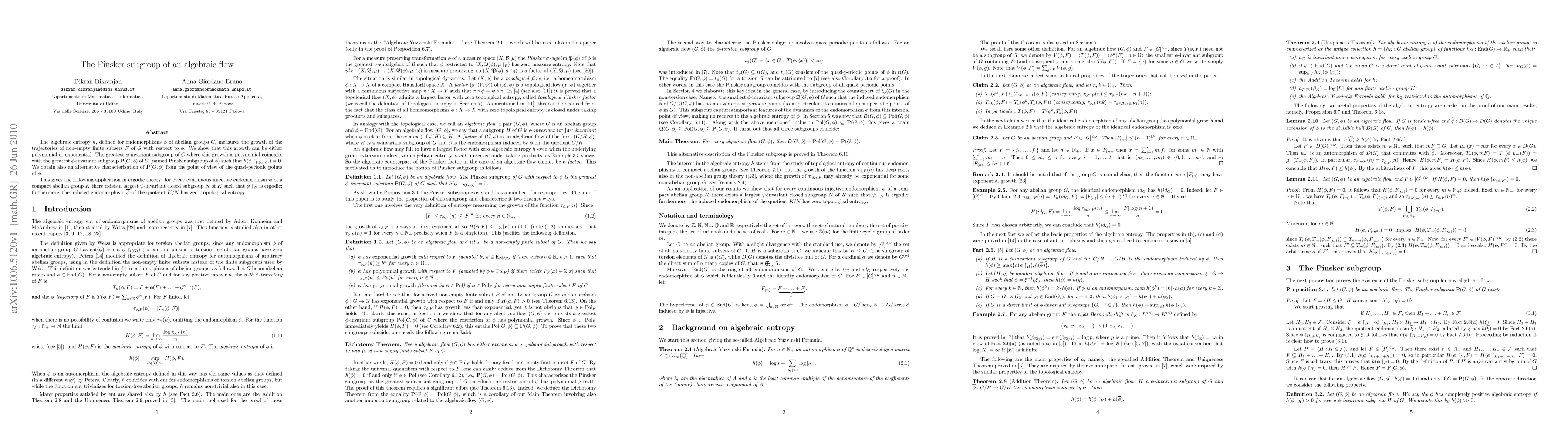 This paper investigates the algebraic entropy of endomorphisms in abelian groups, identifying the Pinsker subgroup where entropy growth is polynomial. It characterizes this subgroup via quasi-periodic points and applies the findings to ergodic theory, proving the existence of a largest ergodic invariant subgroup in continuous injective endomorphisms.