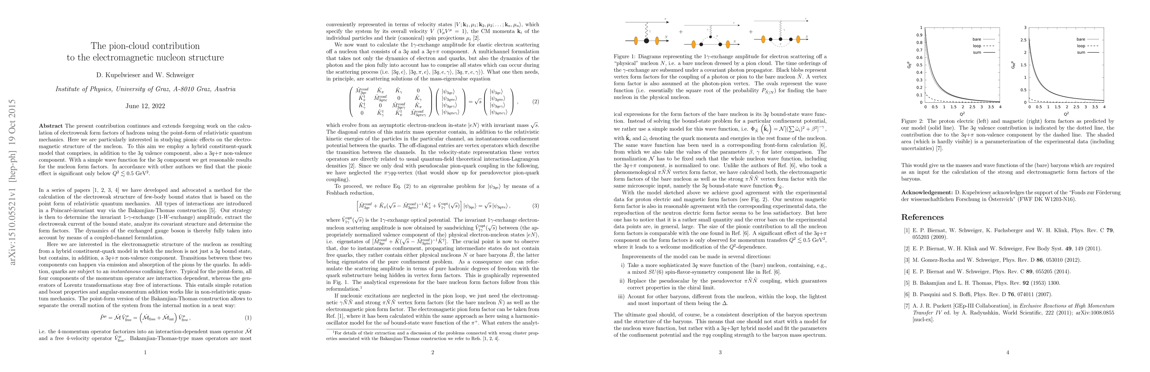 Researchers studied how pions affect the electromagnetic structure of nucleons using a hybrid model that includes both quark and pionic components. They found that pionic effects are significant only at low energy transfers (Q^2 < 0.5 GeV^2).