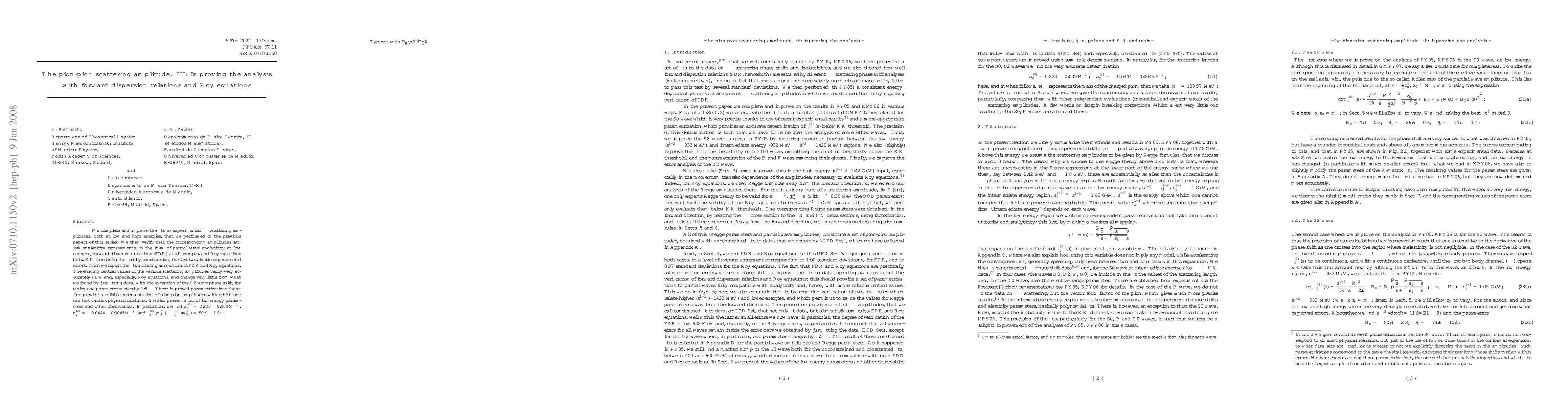 This paper refines the analysis of pion-pion scattering amplitudes using forward dispersion relations and Roy equations, achieving improved fits that accurately satisfy analyticity requirements and show minimal changes from previous data fits, except for the D2 wave phase shift. The study provides reliable parametrizations for testing physical relations and lists key low-energy parameters.