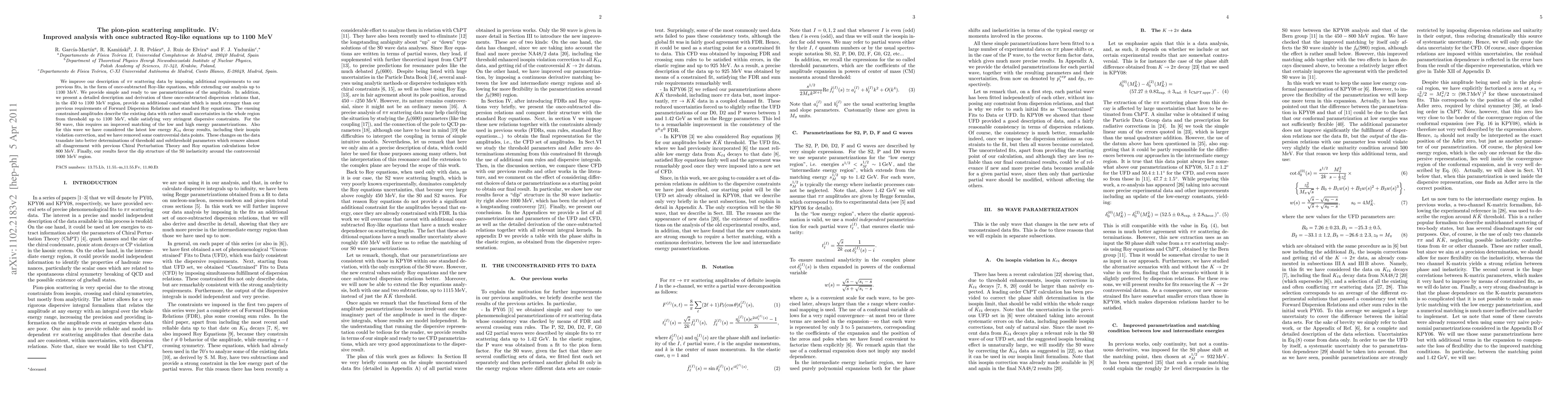 This paper refines the analysis of pion-pion scattering amplitudes using once-subtracted Roy-like equations, extending the study up to 1100 MeV and providing improved parametrizations. The new dispersion relations offer stronger constraints, leading to better agreement with existing data and resolving previous discrepancies with Chiral Perturbation Theory below 800 MeV.
