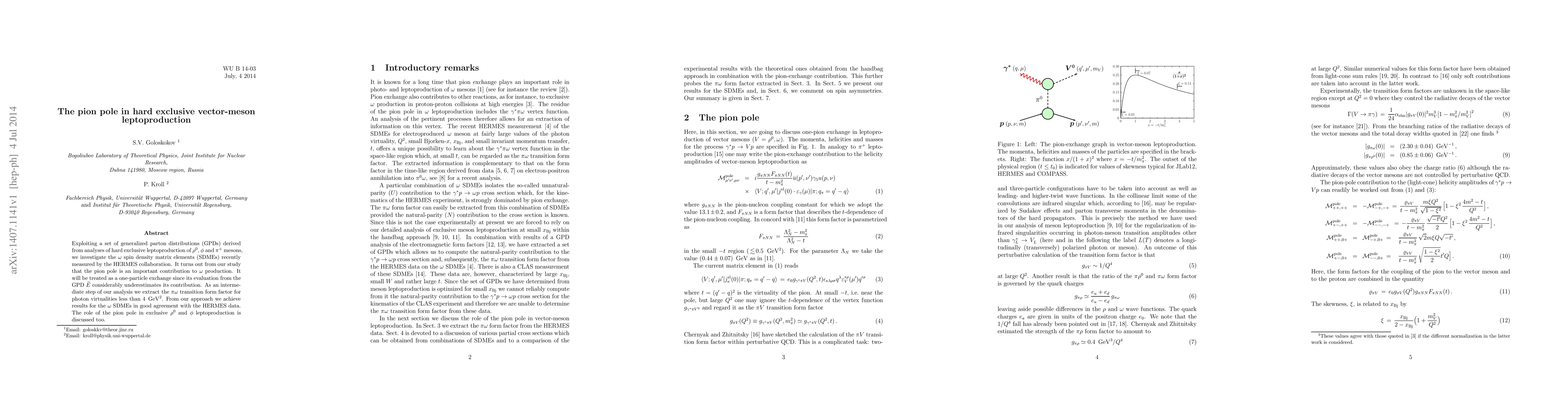This paper investigates the importance of the pion pole in hard exclusive vector-meson leptoproduction, finding that it significantly contributes to omega production, despite being underestimated by generalized parton distribution evaluations. The study also extracts the pi-omega transition form factor and aligns well with HERMES collaboration data.
