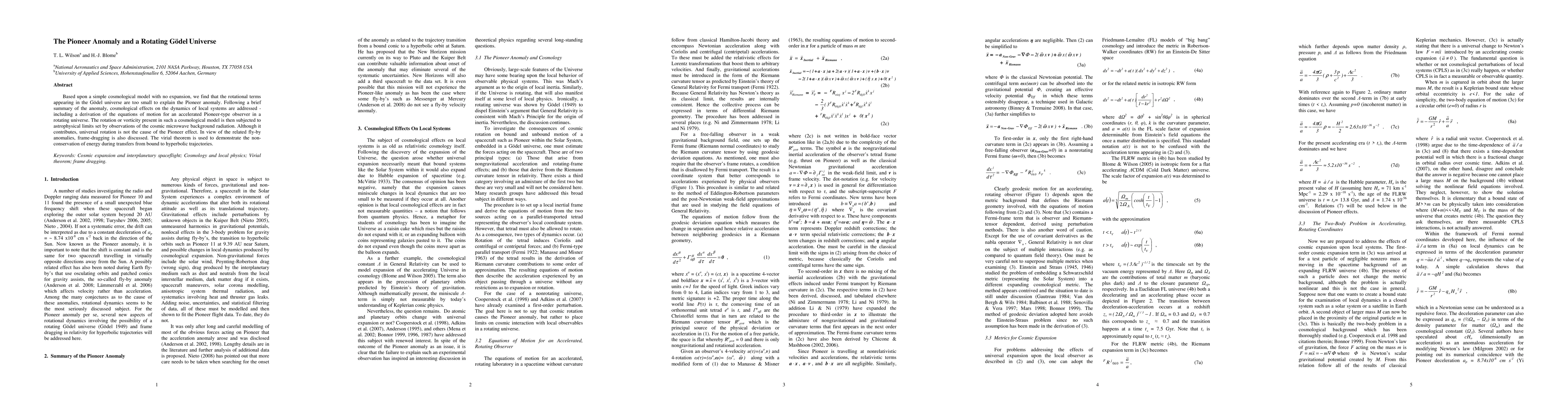 Summary: The paper investigates a non-expanding cosmological model with a rotating Gödel universe, concluding that rotational terms are insufficient to explain the Pioneer anomaly, indicating that universal rotation does not account for the observed Pioneer effect.
