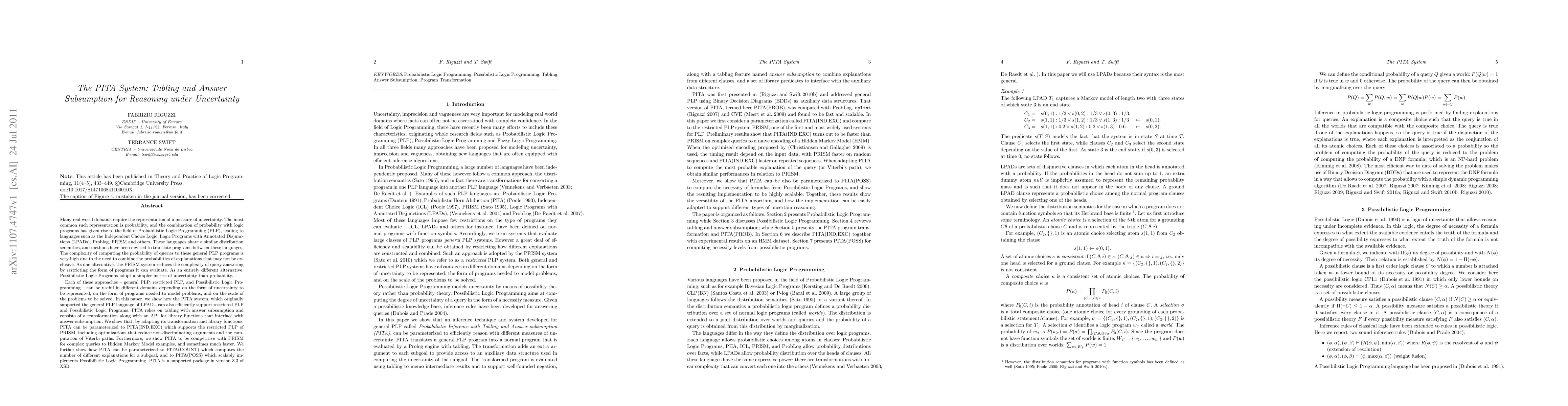 Many real world domains require the representation of a measure of uncertainty. The most common such representation is probability, and the combination of probability with logic programs has given rise to the field of Probabilistic Logic Programming (PLP), leading to languages such as the Independent Choice Logic, Logic Programs with Annotated Disjunctions (LPADs), Problog, PRISM and others. These languages share a similar distribution semantics, and methods have been devised to translate programs between these languages. The complexity of computing the probability of queries to these general PLP programs is very high due to the need to combine the probabilities of explanations that may not be exclusive. As one alternative, the PRISM system reduces the complexity of query answering by restricting the form of programs it can evaluate. As an entirely different alternative, Possibilistic Logic Programs adopt a simpler metric of uncertainty than probability. Each of these approaches -- general PLP, restricted PLP, and Possibilistic Logic Programming -- can be useful in different domains depending on the form of uncertainty to be represented, on the form of programs needed to model problems, and on the scale of the problems to be solved. In this paper, we show how the PITA system, which originally supported the general PLP language of LPADs, can also efficiently support restricted PLP and Possibilistic Logic Programs. PITA relies on tabling with answer subsumption and consists of a transformation along with an API for library functions that interface with answer subsumption.