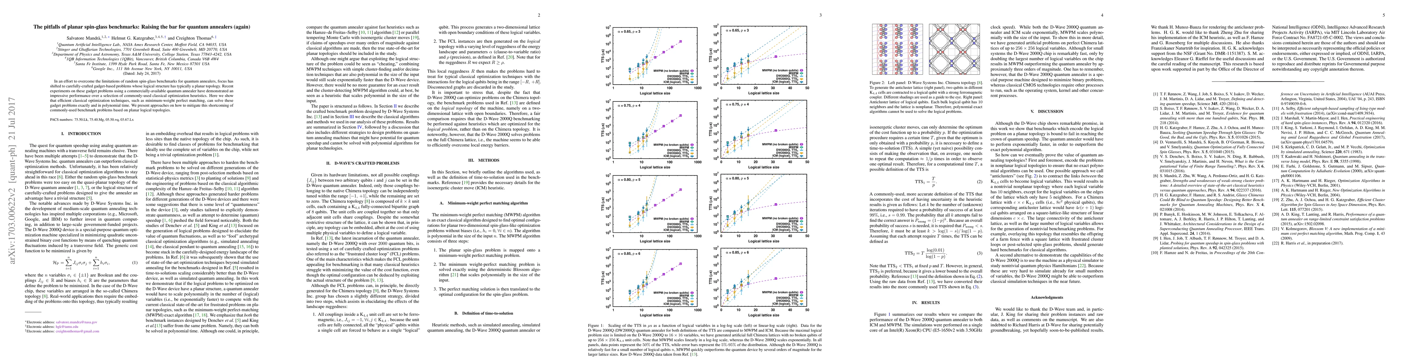 This paper critiques the effectiveness of planar spin-glass benchmarks for quantum annealers, highlighting that they can be solved efficiently using classical optimization techniques. The authors propose strategies to improve these benchmarks to better challenge quantum annealers.