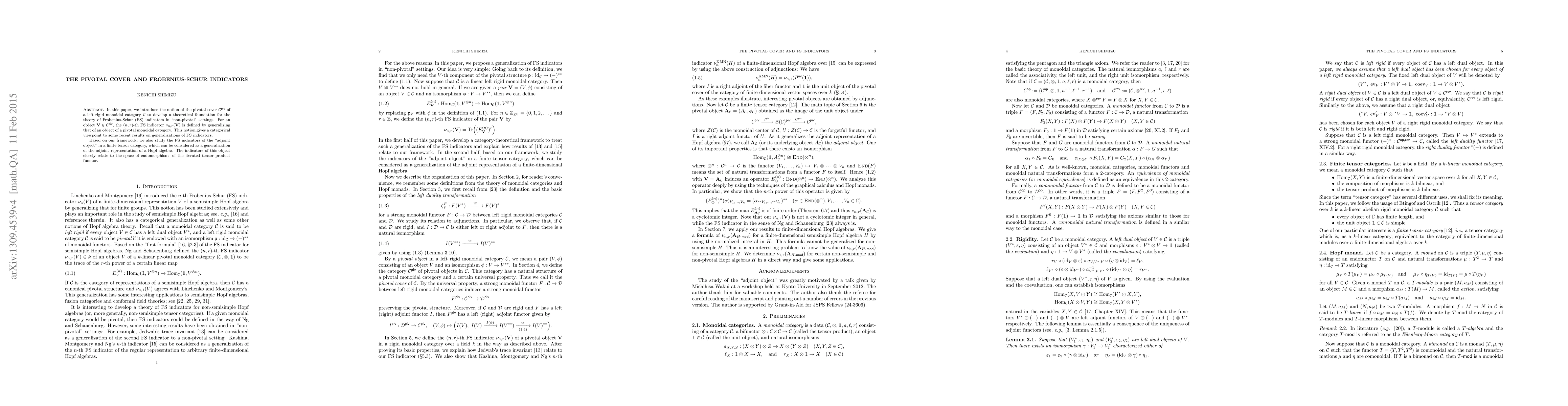 This paper introduces the pivotal cover $\mathcal{C}^{\mathsf{piv}}$ to develop a theoretical foundation for Frobenius-Schur indicators in non-pivotal settings. It generalizes the FS indicators and studies their application to adjoint objects in finite tensor categories, linking them to the space of endomorphisms of iterated tensor product functors.