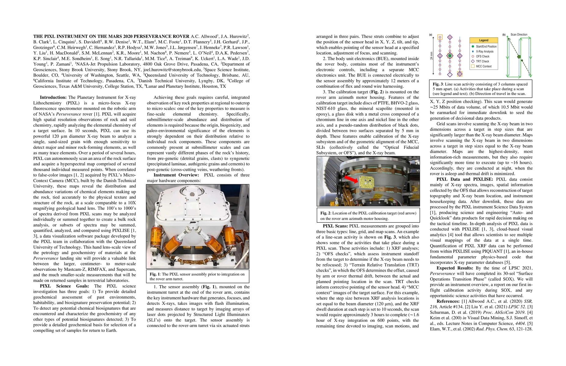 The PIXL instrument on the Mars 2020 Perseverance Rover can analyze a single grain of sand in 10 seconds, detecting major and minor elements with high spatial resolution. The rover's hyperspectral map will help scientists understand Martian rock chemistry.