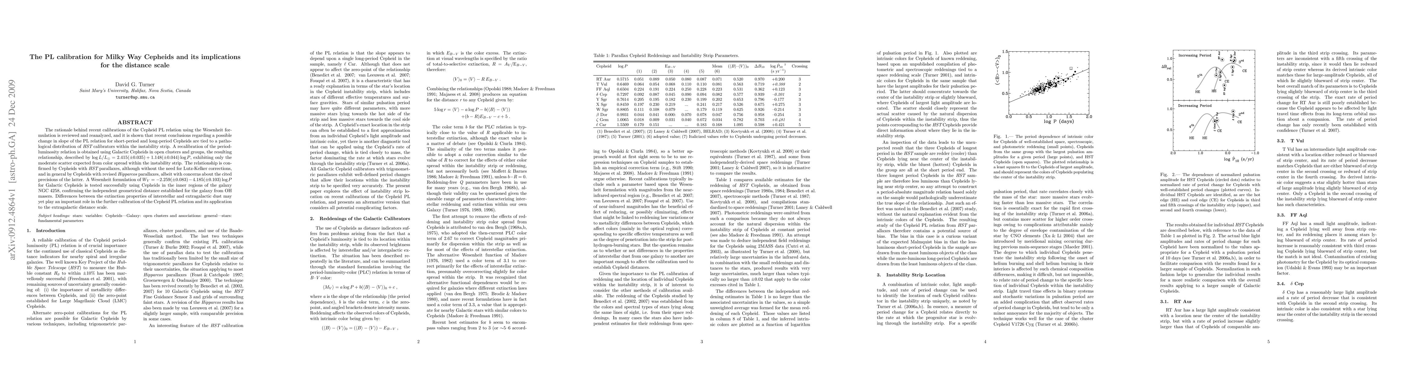 This paper recalibrates the period-luminosity (PL) relation for Milky Way Cepheids, finding a slope change previously reported is due to an unusual distribution of HST calibrators. The new PL relation, log L/L_sun = 2.415(+-0.035) + 1.148(+-0.044)log P, shows expected scatter, and is validated using Cepheids with HST and revised Hipparcos parallaxes.