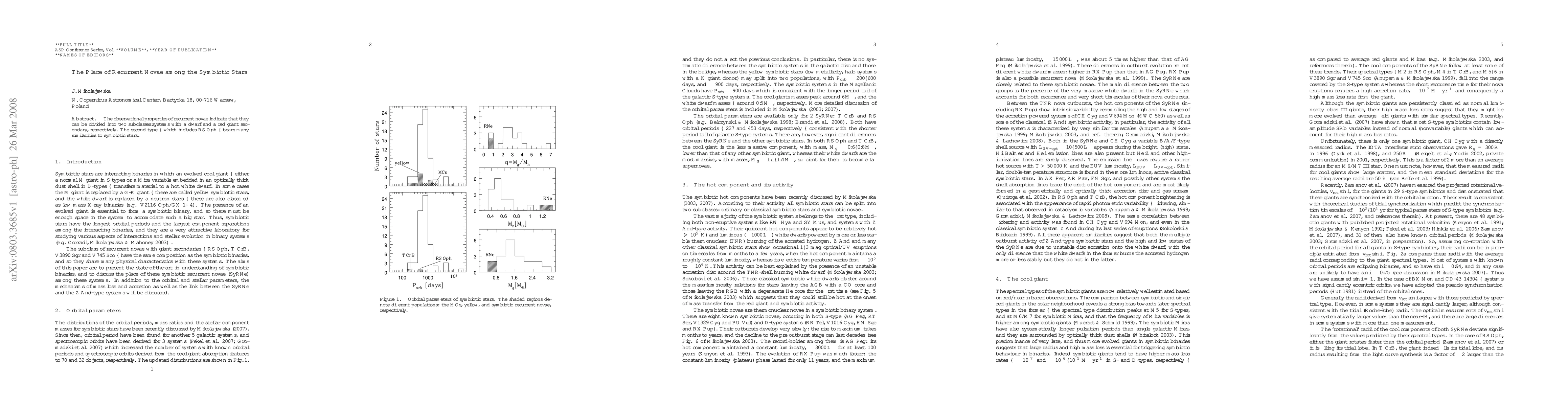 This paper categorizes recurrent novae into two subclasses based on their secondary stars: dwarf and red giant systems. The second subclass, exemplified by RS Oph, shares notable similarities with symbiotic stars.