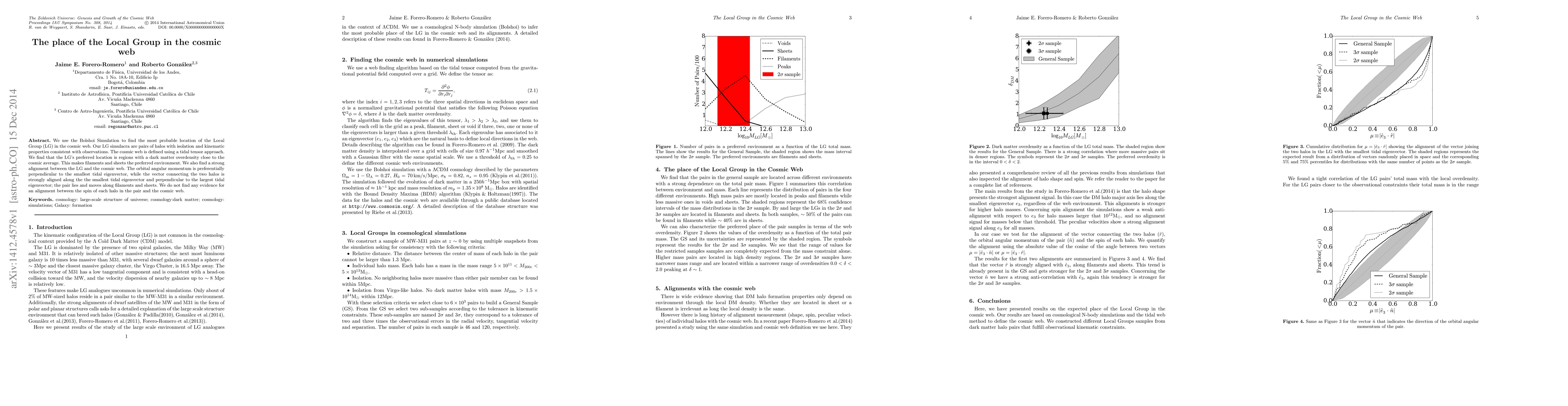 The Local Group's most probable location in the cosmic web, as identified through the Bolshoi Simulation, is in regions with dark matter overdensity close to the cosmic average, favoring filaments and sheets. The Local Group exhibits strong alignment with the cosmic web, with its orbital angular momentum perpendicular to the smallest tidal eigenvector.