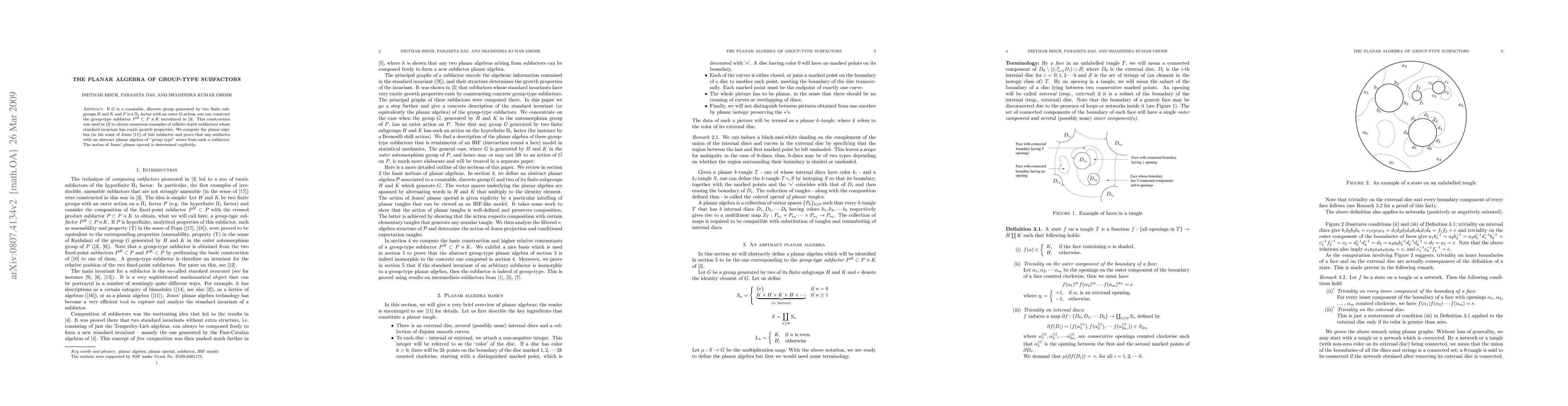 This paper constructs the planar algebra for group-type subfactors derived from a II$_1$ factor with an outer group action, demonstrating that any subfactor with a "group type" planar algebra originates from such a construction. The study explicitly determines the action of Jones' planar operad.