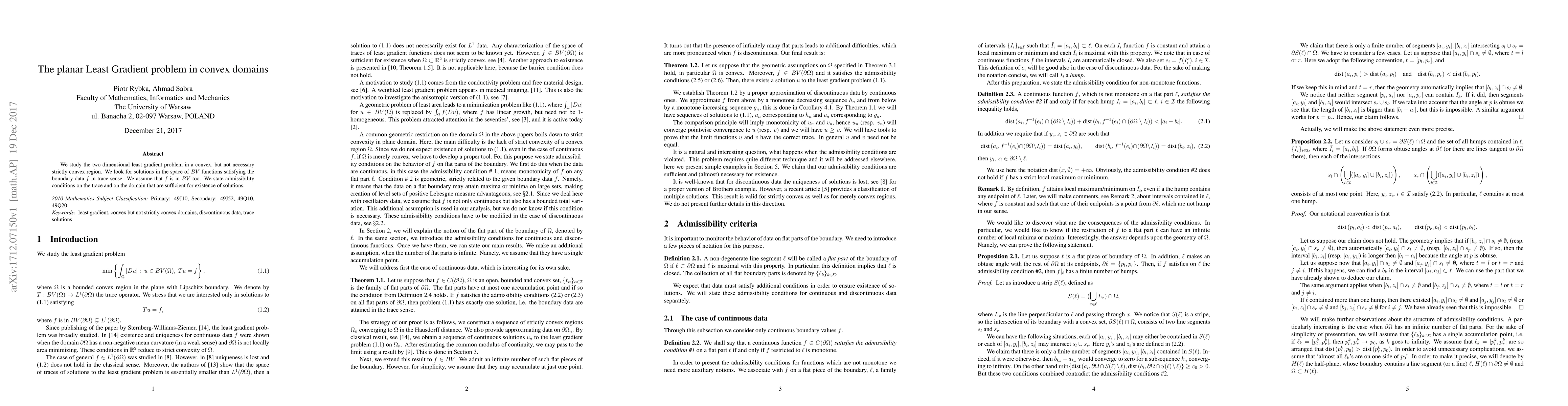 This paper investigates the two-dimensional least gradient problem within convex regions, focusing on $BV$ functions that meet specified boundary conditions. It provides sufficient conditions for the existence of solutions based on the properties of the boundary data and the domain.