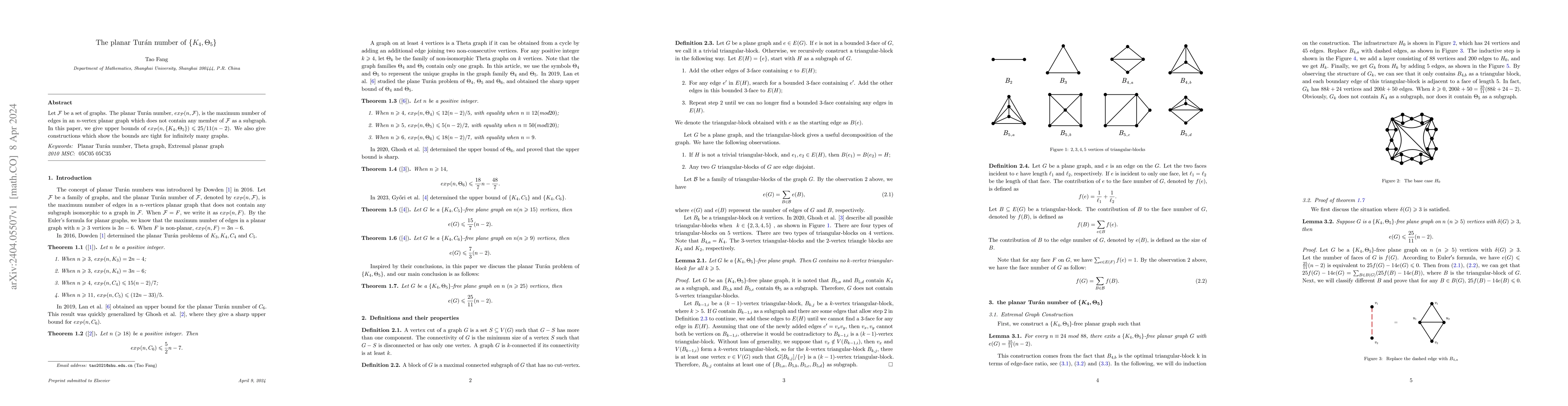 Let $\mathcal{F}$ be a set of graphs. The planar Tur\'an number, $ex_{\mathcal{P}}(n,\mathcal{F})$, is the maximum number of edges in an $n$-vertex planar graph which does not contain any member of $\mathcal{F}$ as a subgraph. In this paper, we give upper bounds of $ex_{\mathcal{P}}(n,\{K_4,\Theta_5\})\leqslant25/11(n-2)$. We also give constructions which show the bounds are tight for infinitely many graphs.