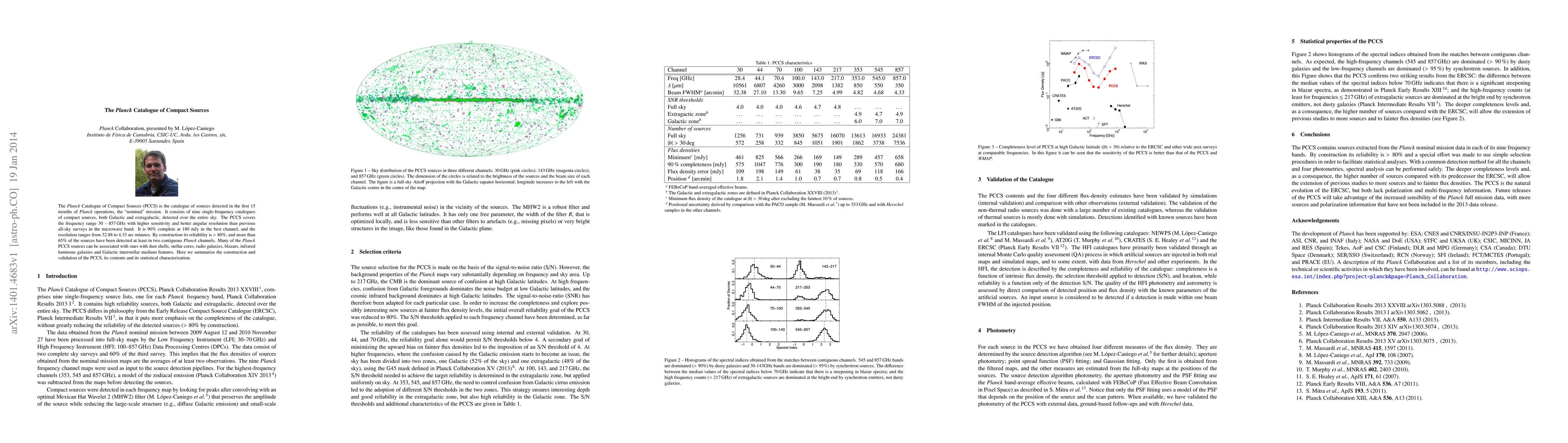 The Planck Catalogue of Compact Sources (PCCS) compiles sources detected over the entire sky in the first 15 months of Planck operations, featuring improved sensitivity and resolution across nine frequency bands from 30 to 857 GHz. The catalogue is 90% complete at 180 mJy and includes associations with various astronomical objects.