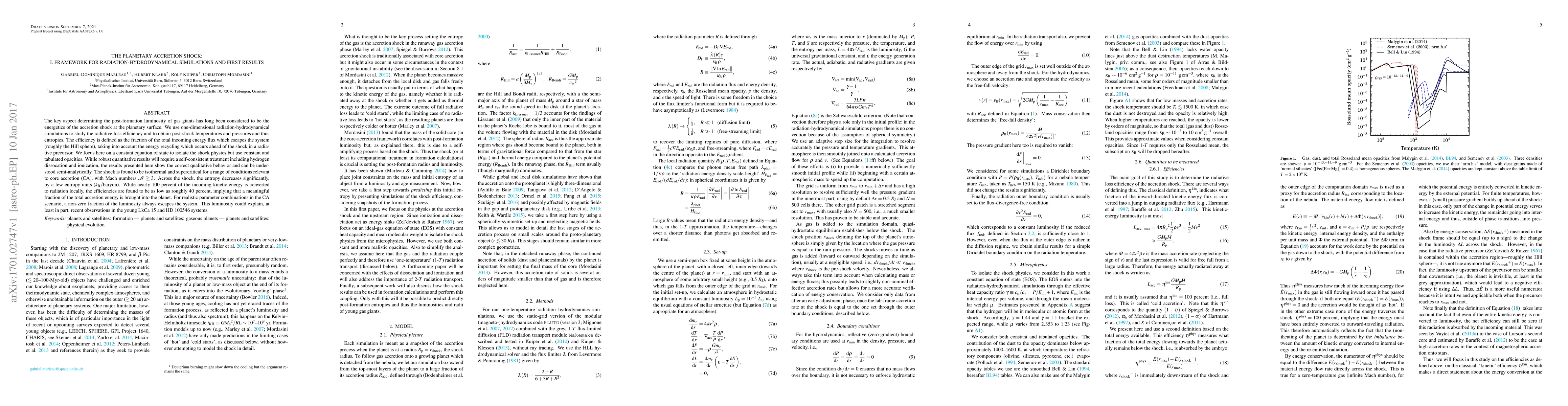 Research simulates accretion shock in gas giants to understand post-formation luminosity; it finds that nearly 100% of incoming energy is converted to radiation but only 40% escapes the system.