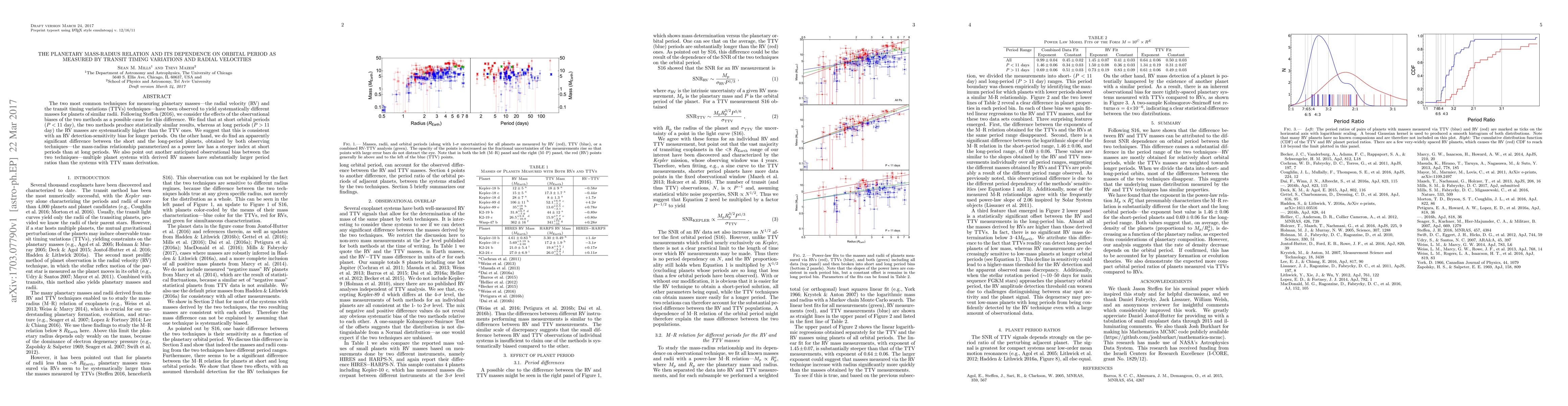 A study finds that two common methods for measuring planetary mass yield different results, with transit timing variations being lower at long periods than radial velocities. This discrepancy suggests observational biases between the techniques.