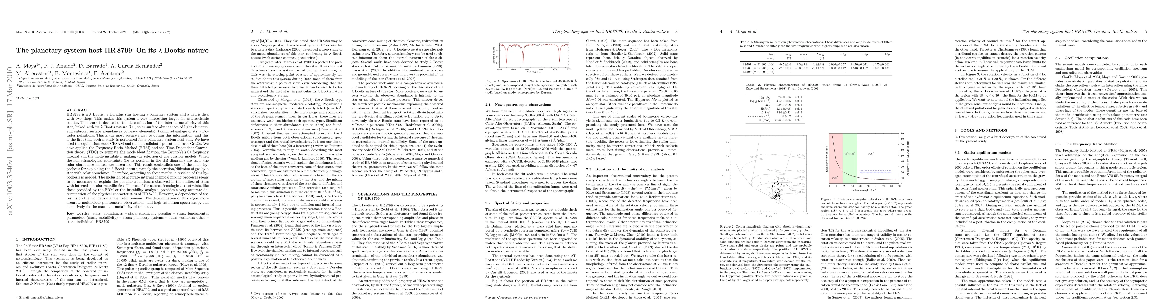 HR\,8799 is a $\lambda$ Bootis, $\gamma$ Doradus star hosting a planetary system and a debris disk with two rings. This makes this system a very interesting target for asteroseismic studies. This work is devoted to the determination of the internal metallicity of this star, linked with its $\lambda$ Bootis nature (i.e., solar surface abundances of light elements, and subsolar surface abundances of heavy elements), taking advantage of its $\gamma$ Doradus pulsations. This is the most accurate way to obtain this information, and this is the first time such a study is performed for a planetary-system-host star. We have used the equilibrium code CESAM and the non-adiabatic pulsational code GraCo. We have applied the Frequency Ratio Method (FRM) and the Time Dependent Convection theory (TDC) to estimate the mode identification, the Brunt-Va\"is\"al\"a frequency integral and the mode instability, making the selection of the possible models. When the non-seismological constraints (i.e its position in the HR diagram) are used, the solar abundance models are discarded. This result contradicts one of the main hypothesis for explaining the $\lambda$ Bootis nature, namely the accretion/diffusion of gas by a star with solar abundance. Therefore, according to these results, a revision of this hypothesis is needed. The inclusion of accurate internal chemical mixing processes seems to be necessary to explain the peculiar abundances observed in the surface of stars with internal subsolar metallicities. The use of the asteroseismological constraints, like those provided by the FRM or the instability analysis, provides a very accurate determination of the physical characteristics of HR 8799. However, a dependence of the results on the inclination angle $i$ still remains. The determination of this angle, more accurate multicolour photometric observations, and high resolution spectroscopy can definitively fix the mass and metallicity of this star.