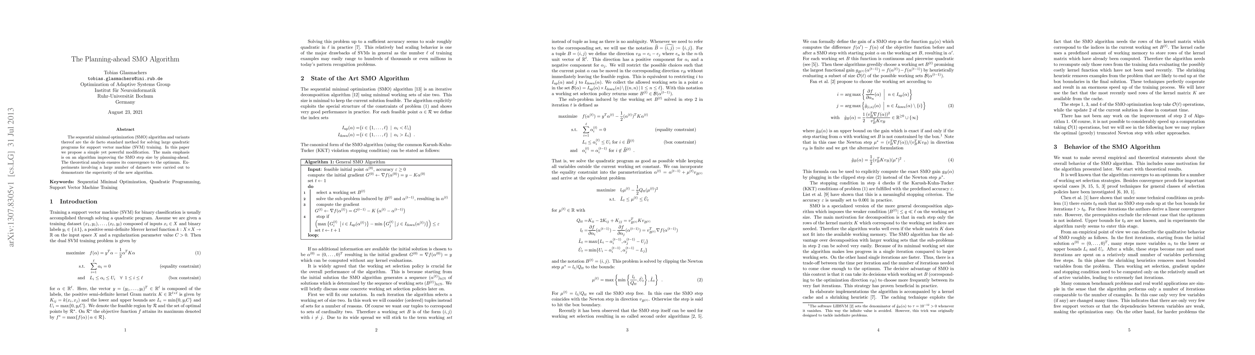 The sequential minimal optimization (SMO) algorithm and variants thereof are the de facto standard method for solving large quadratic programs for support vector machine (SVM) training. In this paper we propose a simple yet powerful modification. The main emphasis is on an algorithm improving the SMO step size by planning-ahead. The theoretical analysis ensures its convergence to the optimum. Experiments involving a large number of datasets were carried out to demonstrate the superiority of the new algorithm.