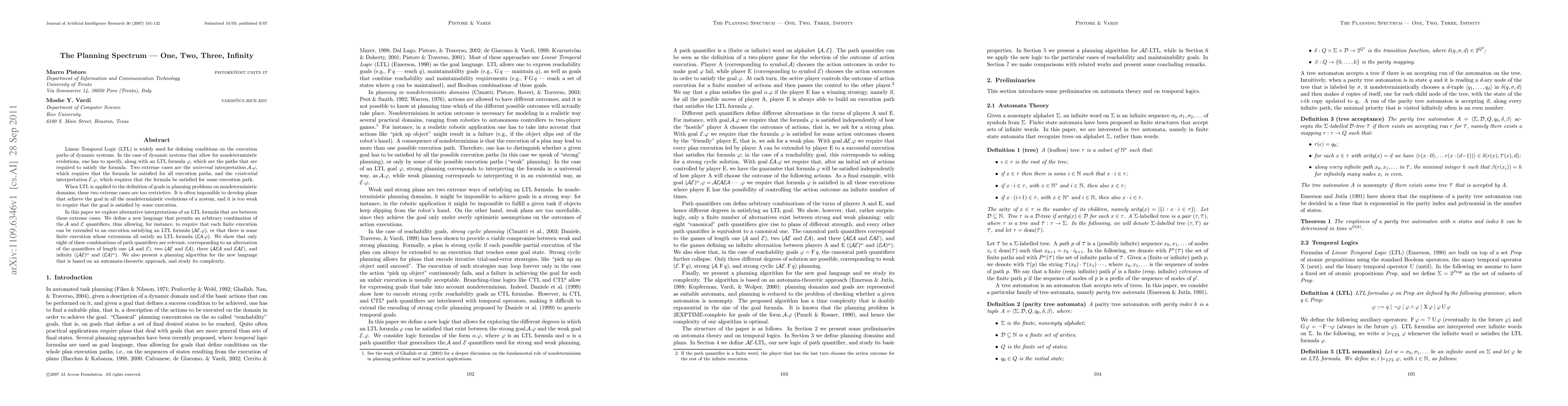 Linear Temporal Logic (LTL) is widely used for defining conditions on the execution paths of dynamic systems. In the case of dynamic systems that allow for nondeterministic evolutions, one has to specify, along with an LTL formula f, which are the paths that are required to satisfy the formula. Two extreme cases are the universal interpretation A.f, which requires that the formula be satisfied for all execution paths, and the existential interpretation E.f, which requires that the formula be satisfied for some execution path. When LTL is applied to the definition of goals in planning problems on nondeterministic domains, these two extreme cases are too restrictive. It is often impossible to develop plans that achieve the goal in all the nondeterministic evolutions of a system, and it is too weak to require that the goal is satisfied by some execution. In this paper we explore alternative interpretations of an LTL formula that are between these extreme cases. We define a new language that permits an arbitrary combination of the A and E quantifiers, thus allowing, for instance, to require that each finite execution can be extended to an execution satisfying an LTL formula (AE.f), or that there is some finite execution whose extensions all satisfy an LTL formula (EA.f). We show that only eight of these combinations of path quantifiers are relevant, corresponding to an alternation of the quantifiers of length one (A and E), two (AE and EA), three (AEA and EAE), and infinity ((AE)* and (EA)*). We also present a planning algorithm for the new language that is based on an automata-theoretic approach, and study its complexity.