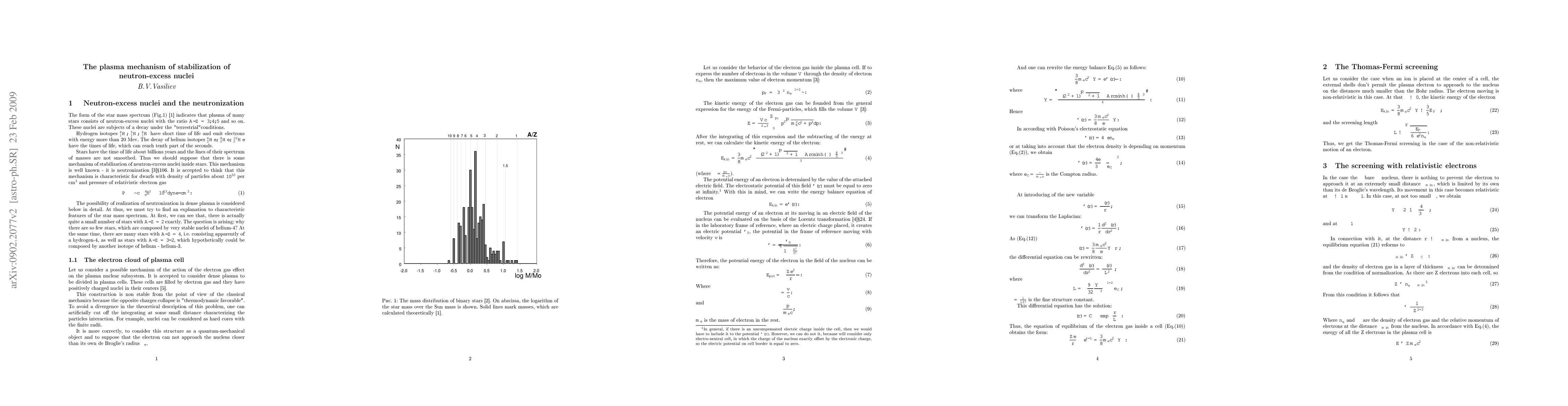 Researchers investigated how stars stabilize neutron-rich nuclei, proposing a plasma mechanism as the key process, which could explain similar stabilization in low-mass stars.