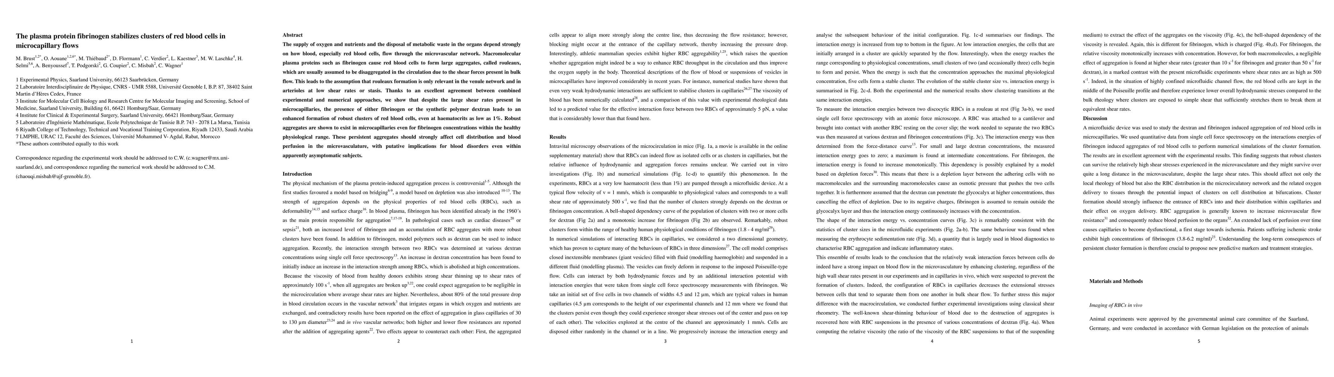 This study reveals that fibrinogen stabilizes clusters of red blood cells in microcapillaries despite high shear rates, forming robust aggregates even at low hematocrit levels, which may impact blood perfusion and have implications for blood disorders.