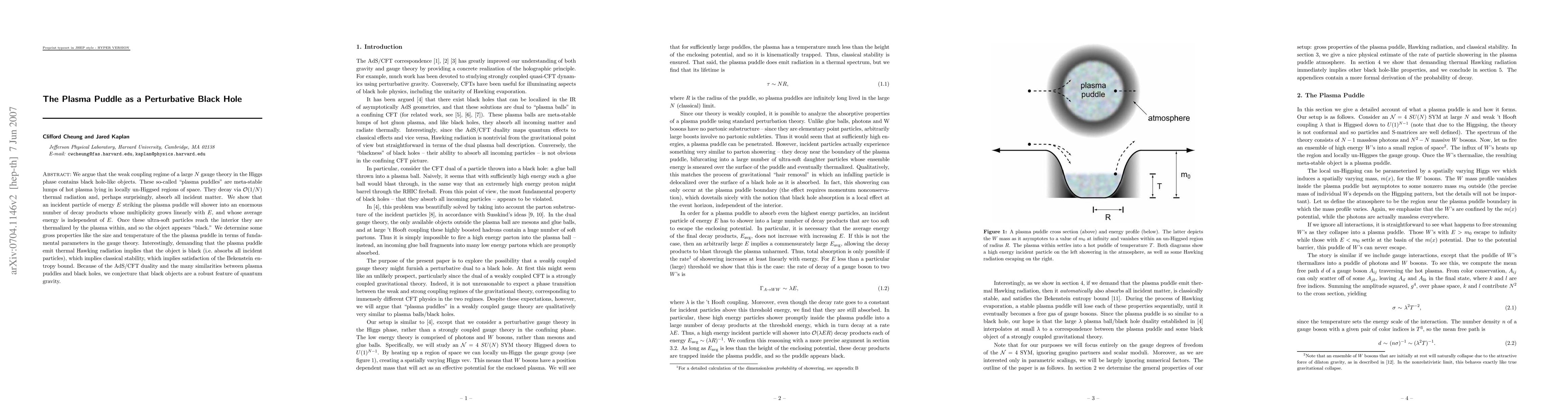We argue that the weak coupling regime of a large N gauge theory in the Higgs phase contains black hole-like objects. These so-called ``plasma puddles'' are meta-stable lumps of hot plasma lying in locally un-Higgsed regions of space. They decay via O(1/N) thermal radiation and, perhaps surprisingly, absorb all incident matter. We show that an incident particle of energy E striking the plasma puddle will shower into an enormous number of decay products whose multiplicity grows linearly with E, and whose average energy is independent of E. Once these ultra-soft particles reach the interior they are thermalized by the plasma within, and so the object appears ``black.'' We determine some gross properties like the size and temperature of the the plasma puddle in terms of fundamental parameters in the gauge theory. Interestingly, demanding that the plasma puddle emit thermal Hawking radiation implies that the object is black (i.e. absorbs all incident particles), which implies classical stability, which implies satisfaction of the Bekenstein entropy bound. Because of the AdS/CFT duality and the many similarities between plasma puddles and black holes, we conjecture that black objects are a robust feature of quantum gravity.