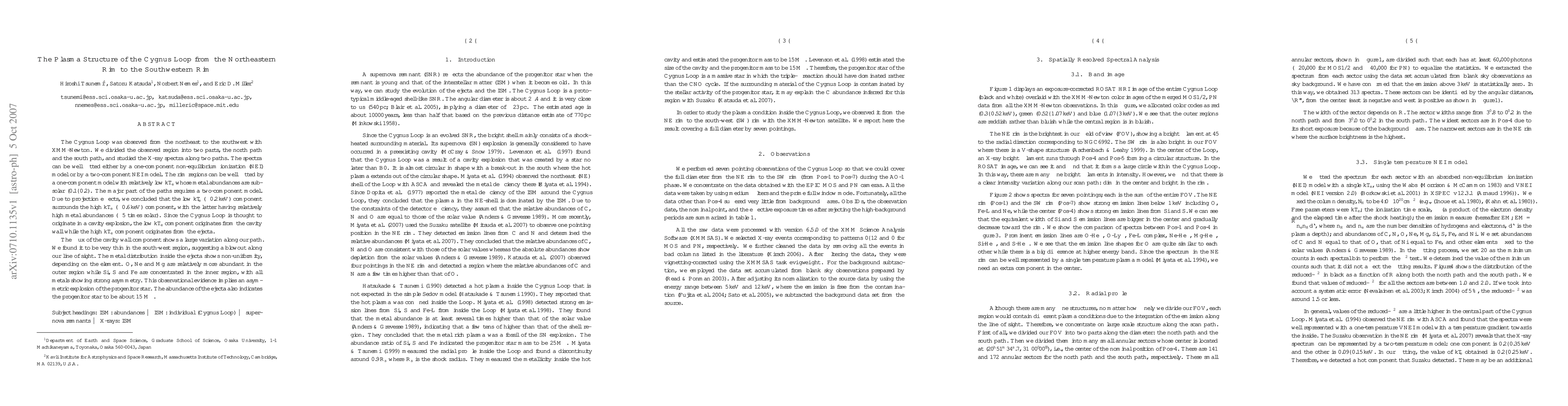 The Cygnus Loop shows a two-component plasma structure with low-temperature (0.2 keV) and high-temperature (0.6 keV) components, indicating an asymmetric explosion of the progenitor star.