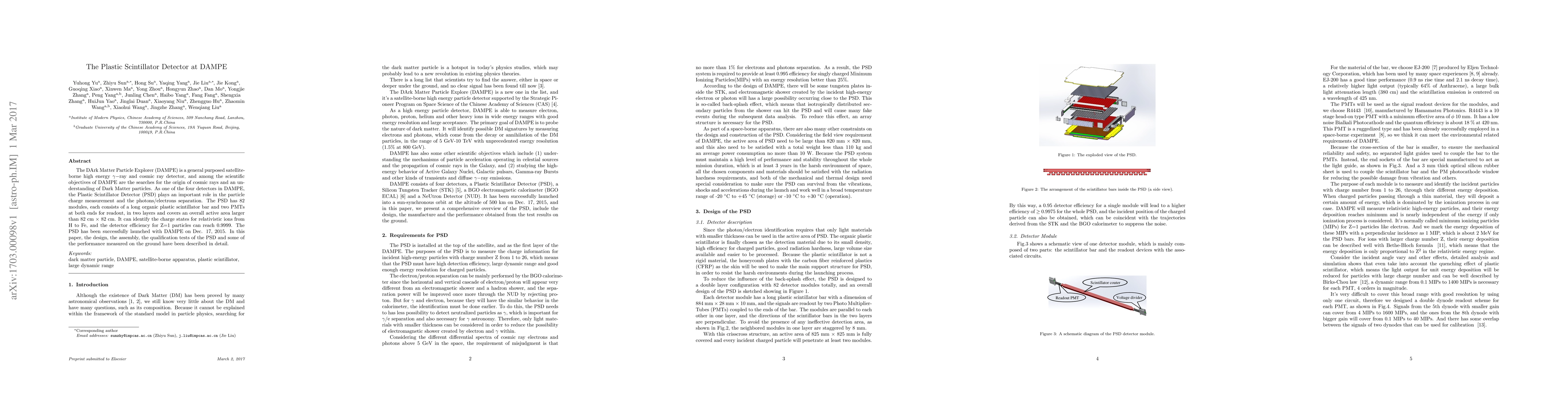 The Plastic Scintillator Detector (PSD) in DAMPE is crucial for charge measurement and photon/electron separation, with 82 modules covering an active area of over 82 cm × 82 cm. The PSD successfully identifies charge states for relativistic ions and boasts a 0.9999 efficiency for Z=1 particles.