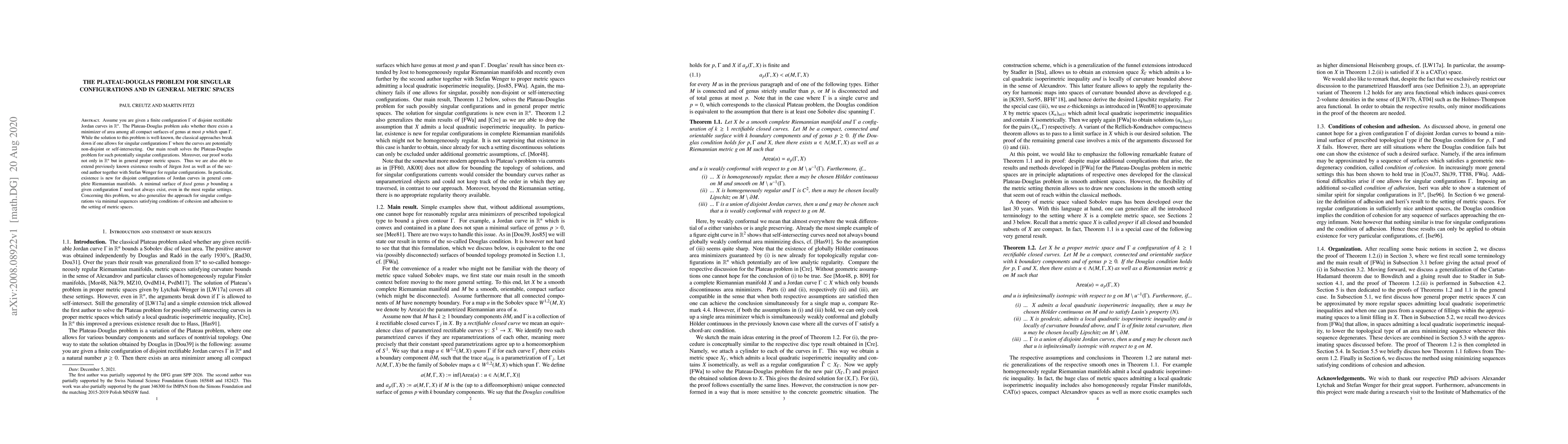 This work is novel because it provides a solution to the Plateau-Douglas problem for singular configurations, which was previously unknown or unsolved.