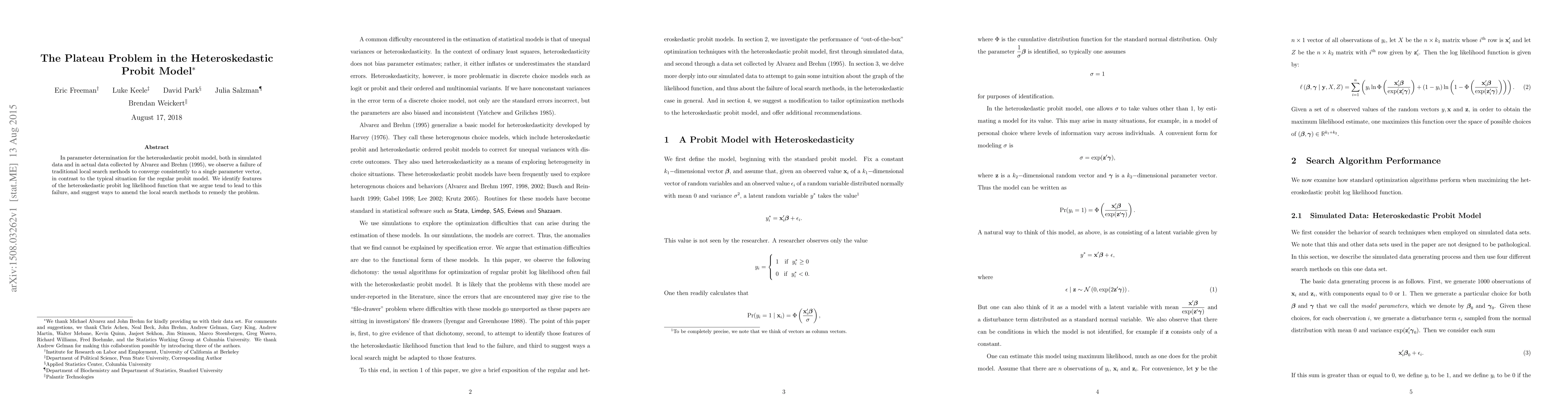 In parameter determination for the heteroskedastic probit model, both in simulated data and in actual data, we observe a failure of traditional local search methods to converge consistently to a single parameter vector, in contrast to the typical situation for the regular probit model. We identify features of the heteroskedastic probit log likelihood function that we argue tend to lead to this failure, and suggest ways to amend the local search methods to remedy the problem.