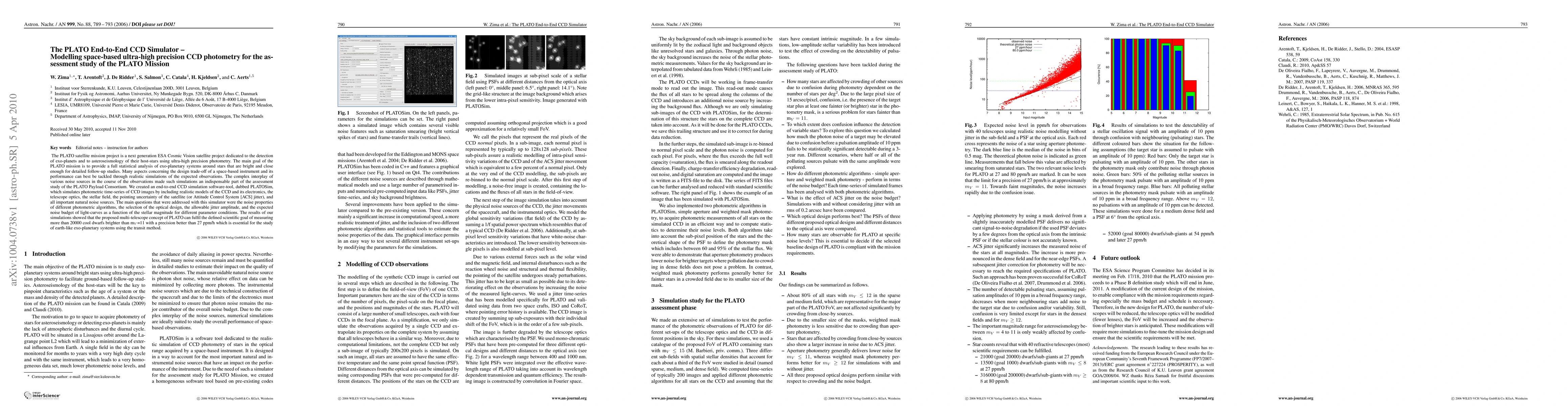The PLATO End-to-End CCD Simulator, PLATOSim, models space-based ultra-high precision photometry for the PLATO mission, assessing exo-planet detection and asteroseismology. The simulations evaluate noise properties, optical design, and expected light-curve precision, confirming PLATO's capability to measure over 20,000 cool dwarfs with high precision.