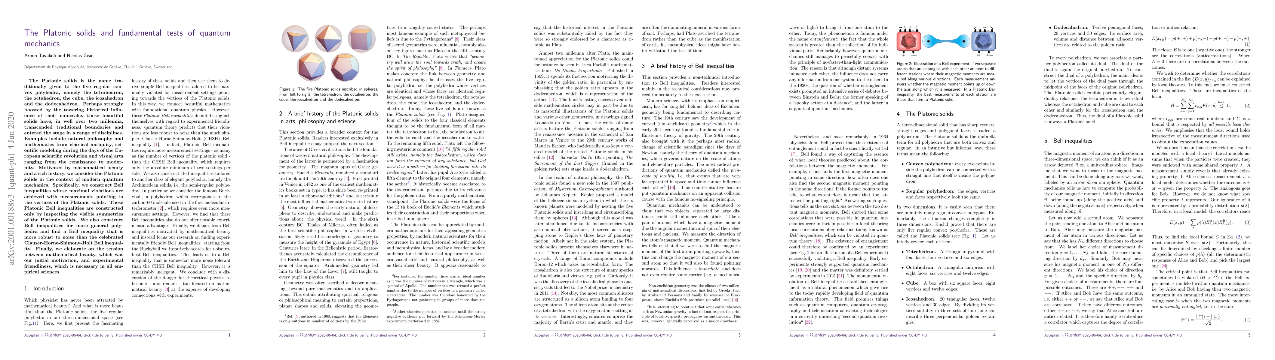 This paper explores the intersection of Platonic solids and quantum mechanics by constructing Bell inequalities that achieve maximal violations through measurements aligned with the vertices of these solids. It also develops a robust Bell inequality for general polyhedra, highlighting the balance between mathematical elegance and experimental feasibility.