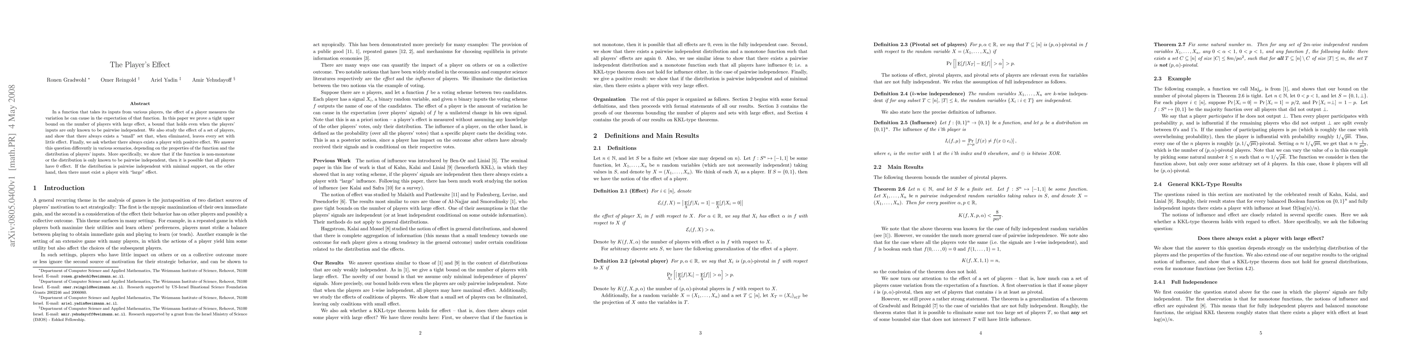 A study on player effects in a function that takes inputs from multiple players shows that there is a tight upper bound on the number of players with large effect, and that some scenarios can result in no players having positive effect.