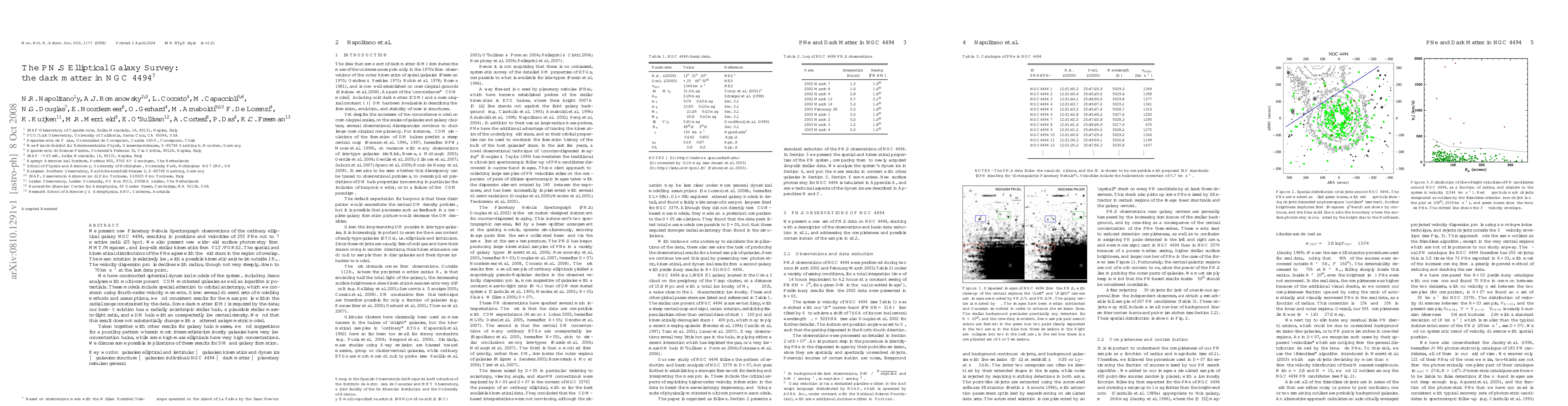 We present new Planetary Nebula Spectrograph observations of the ordinary elliptical galaxy NGC 4494, resulting in positions and velocities of 255 PNe out to 7 effective radii (25 kpc). We also present new wide-field surface photometry from MMT/Megacam, and long-slit stellar kinematics from VLT/FORS2. The spatial and kinematical distributions of the PNe agree with the field stars in the region of overlap. The mean rotation is relatively low, with a possible kinematic axis twist outside 1 Re. The velocity dispersion profile declines with radius, though not very steeply, down to ~70 km/s at the last data point. We have constructed spherical dynamical models of the system, including Jeans analyses with multi-component LCDM-motivated galaxies as well as logarithmic potentials. These models include special attention to orbital anisotropy, which we constrain using fourth-order velocity moments. Given several different sets of modelling methods and assumptions, we find consistent results for the mass profile within the radial range constrained by the data. Some dark matter (DM) is required by the data; our best-fit solution has a radially anisotropic stellar halo, a plausible stellar mass-to-light ratio, and a DM halo with an unexpectedly low central density. We find that this result does not substantially change with a flattened axisymmetric model. Taken together with other results for galaxy halo masses, we find suggestions for a puzzling pattern wherein most intermediate-luminosity galaxies have very low concentration halos, while some high-mass ellipticals have very high concentrations. We discuss some possible implications of these results for DM and galaxy formation.