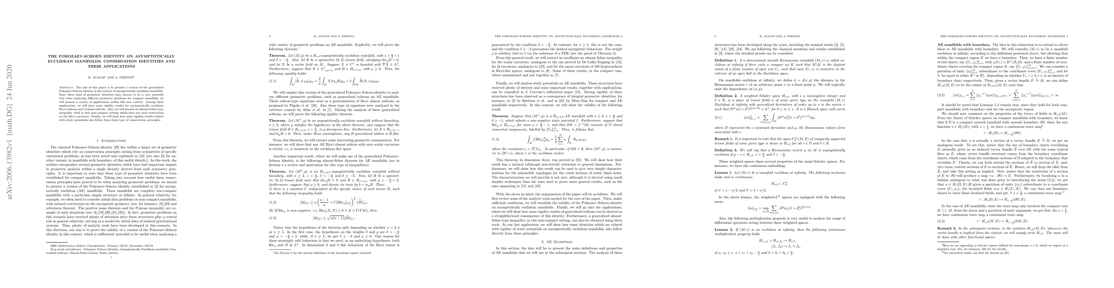 This paper presents a version of the Pohozaev-Schoen identity in asymptotically euclidean manifolds, exploring its applications to geometric problems and rigidity results for specific types of solitons.