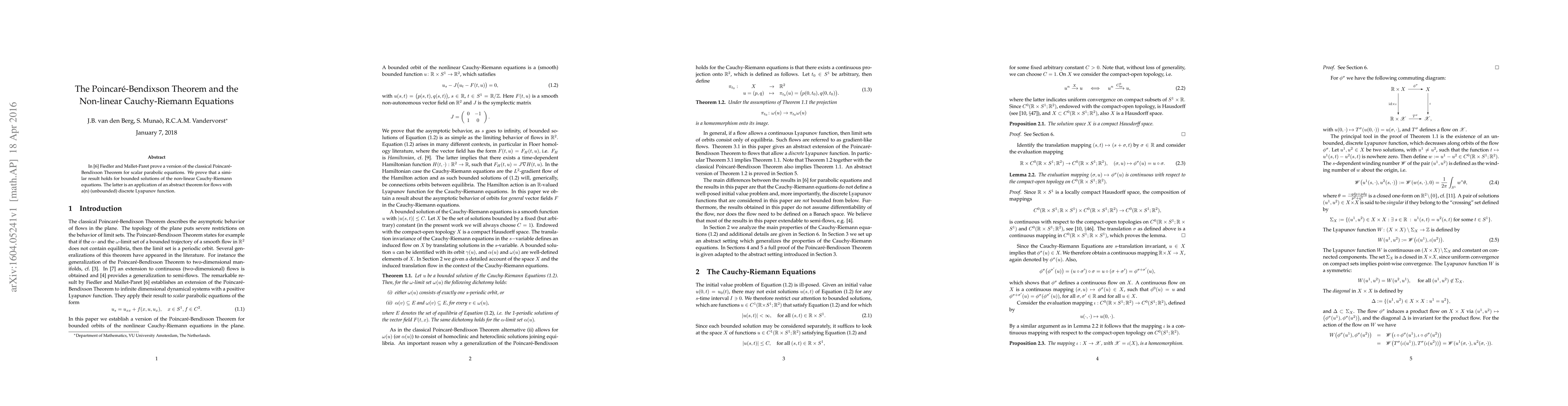 This paper extends the Poincaré-Bendixson Theorem to scalar parabolic equations and applies it to bounded solutions of non-linear Cauchy-Riemann equations, leveraging an abstract theorem involving discrete Lyapunov functions.