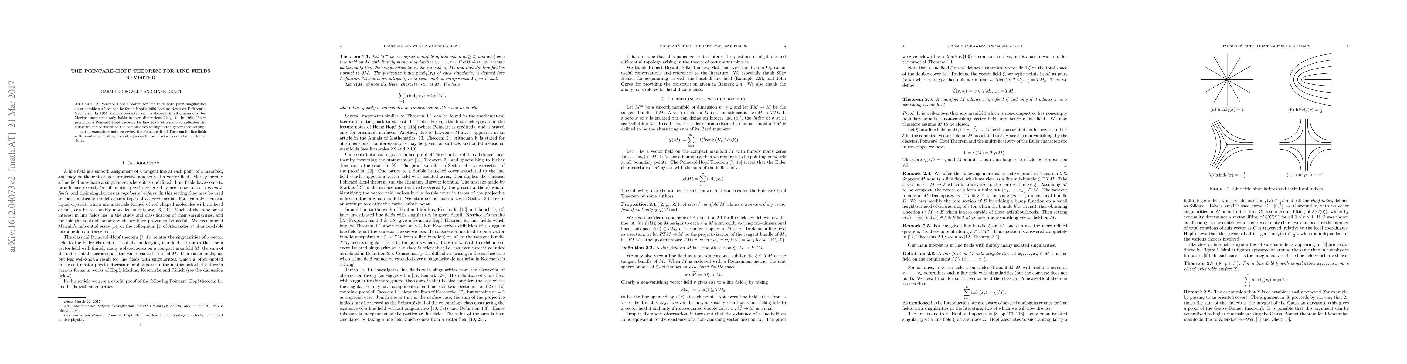 This paper reviews the Poincar\'e-Hopf Theorem for line fields with point singularities on orientable surfaces, correcting limitations in earlier versions and providing a proof valid in all dimensions, including previously excluded odd dimensions. It also discusses complexities introduced by more intricate singularities.