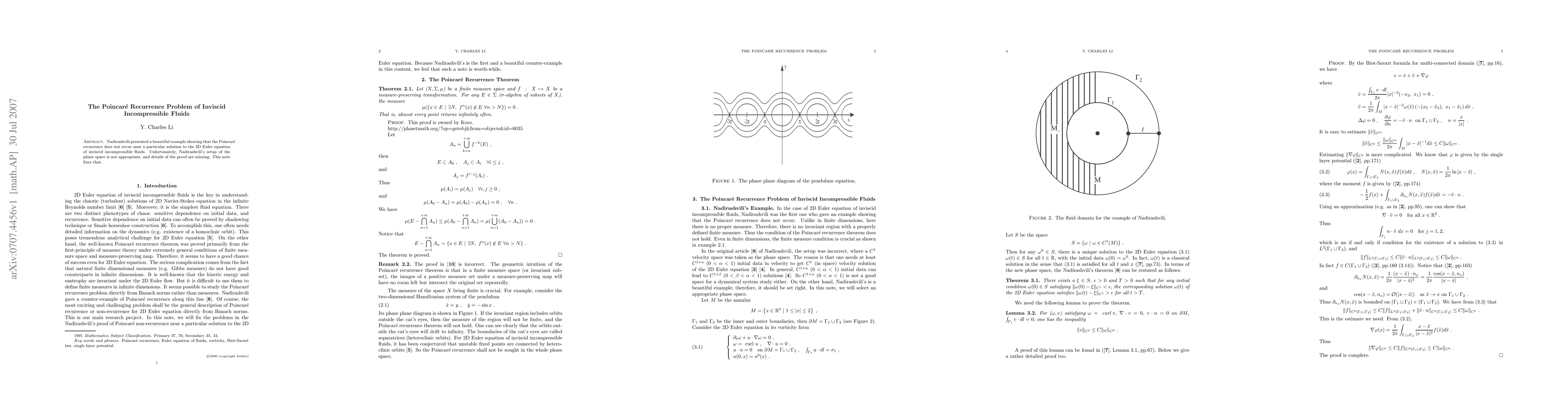 This paper corrects Nadirashvili's flawed demonstration of the non-occurrence of Poincar\'e recurrence in 2D Euler equations for inviscid incompressible fluids by providing a proper phase space setup and completing the missing proof details.
