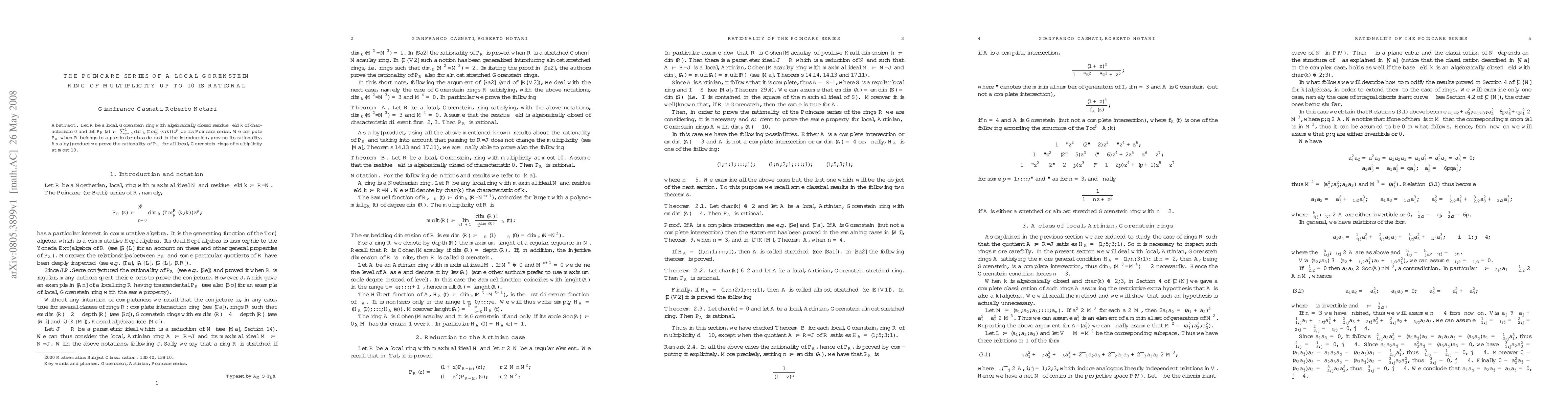 This paper proves the rationality of the Poincaré series for local Gorenstein rings with a multiplicity up to 10, and as a result, establishes the rationality for all such rings in this specific class. The study leverages the algebraic structure of these rings and their torsion properties.