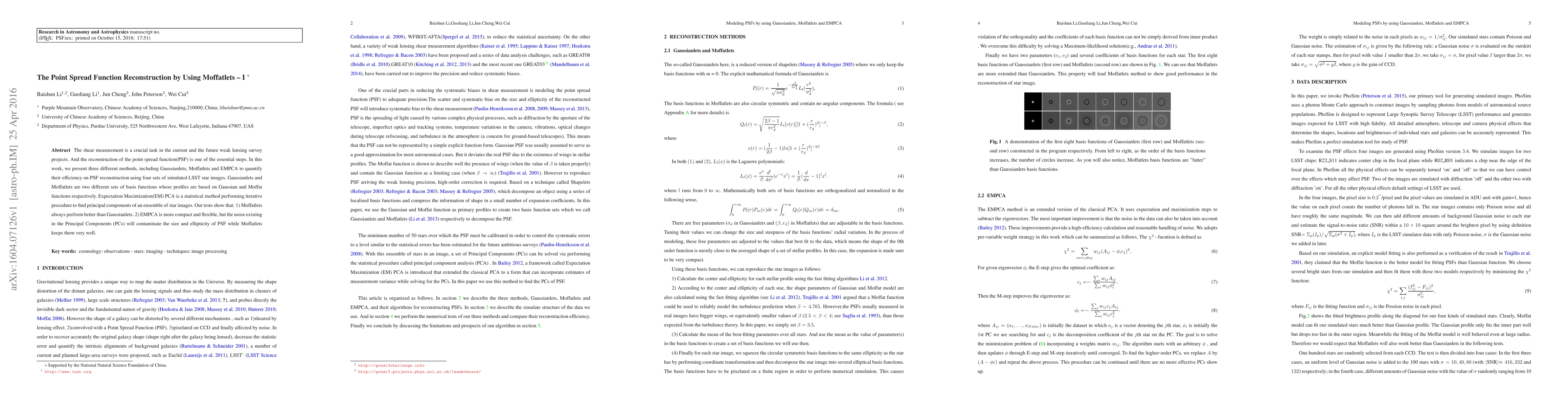 Researchers compared three methods for reconstructing point spread functions in weak lensing surveys: Moffatlets, Gaussianlets, and EMPCA. Moffatlets outperformed Gaussianlets with better results, while EMPCA offers flexibility but may introduce noise into PSF estimates.