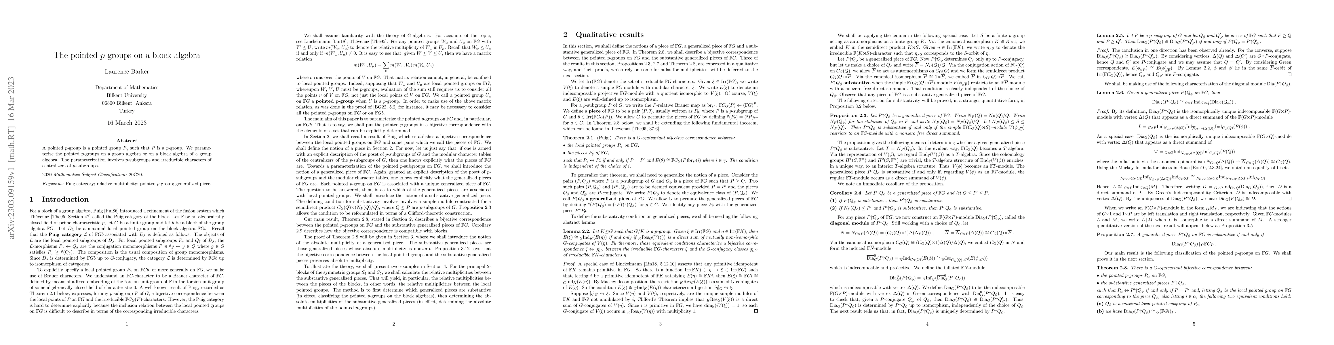 Summary: This paper studies pointed $p$-groups within group algebra and block algebra contexts, parameterizing them through $p$-subgroups and irreducible characters of centralizers of $p$-subgroups. The focus is on the structural properties and classification of these groups.