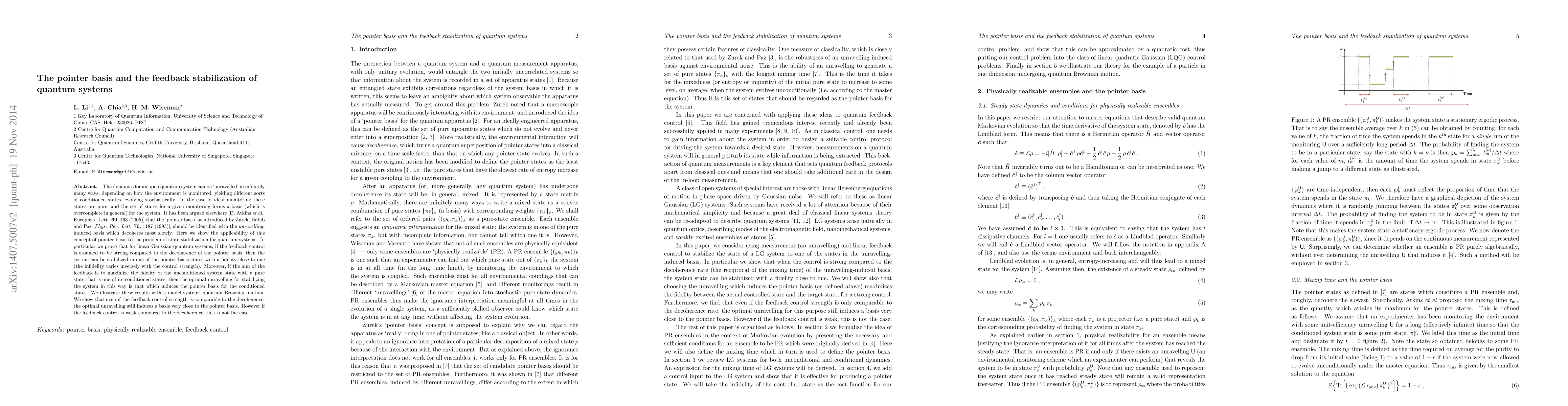 This paper explores the concept of the "pointer basis" in quantum systems and its role in feedback stabilization. It demonstrates that for linear Gaussian quantum systems, strong feedback control can stabilize the system in a pointer basis state with high fidelity, while the optimal unraveling for maximizing fidelity aligns with the pointer basis. The study uses quantum Brownian motion as a model to illustrate these principles.