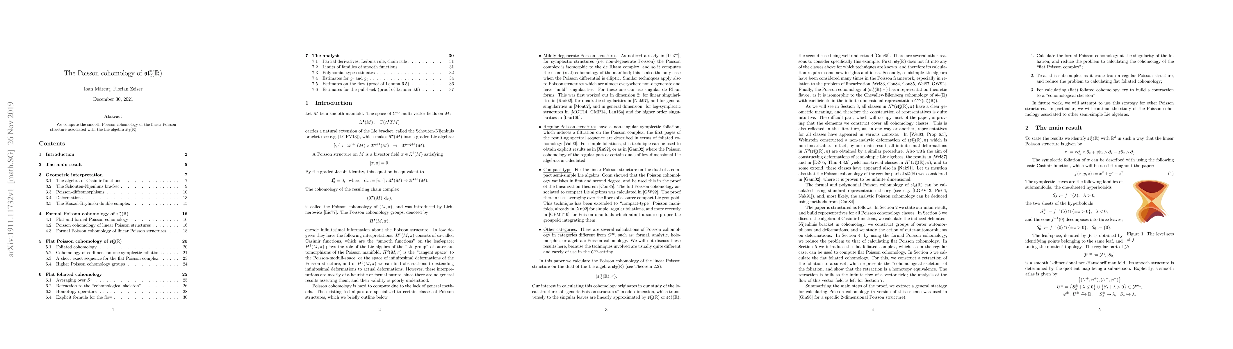 Summary: This paper computes the smooth Poisson cohomology of the linear Poisson structure on $\mathfrak{sl}_2^*(\mathbb{R})$, providing insights into the algebraic structure and cohomology of this specific Lie algebra. The results contribute to the broader understanding of Poisson geometry.