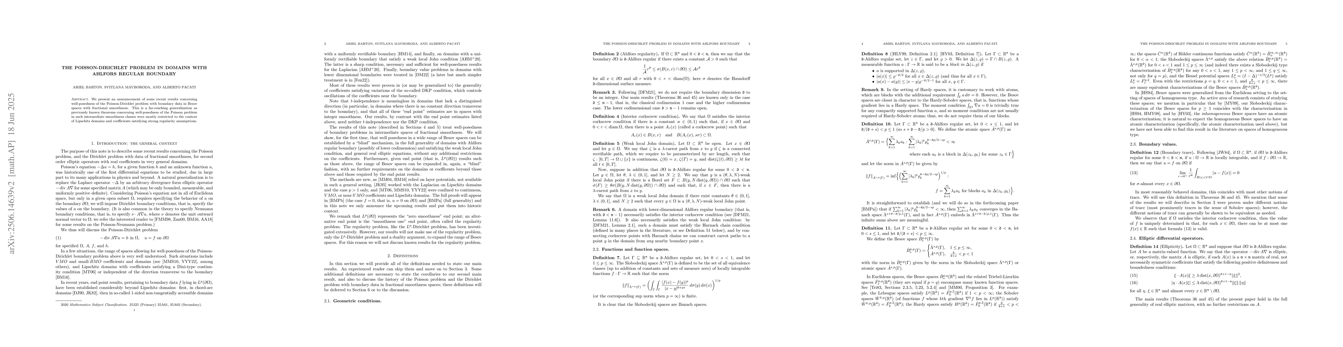 This paper announces new results on the well-posedness of the Poisson-Dirichlet problem with boundary data in Besov spaces, extending previous theorems from Lipschitz domains to Ahlfors regular boundary domains with less restrictive coefficient regularity assumptions.