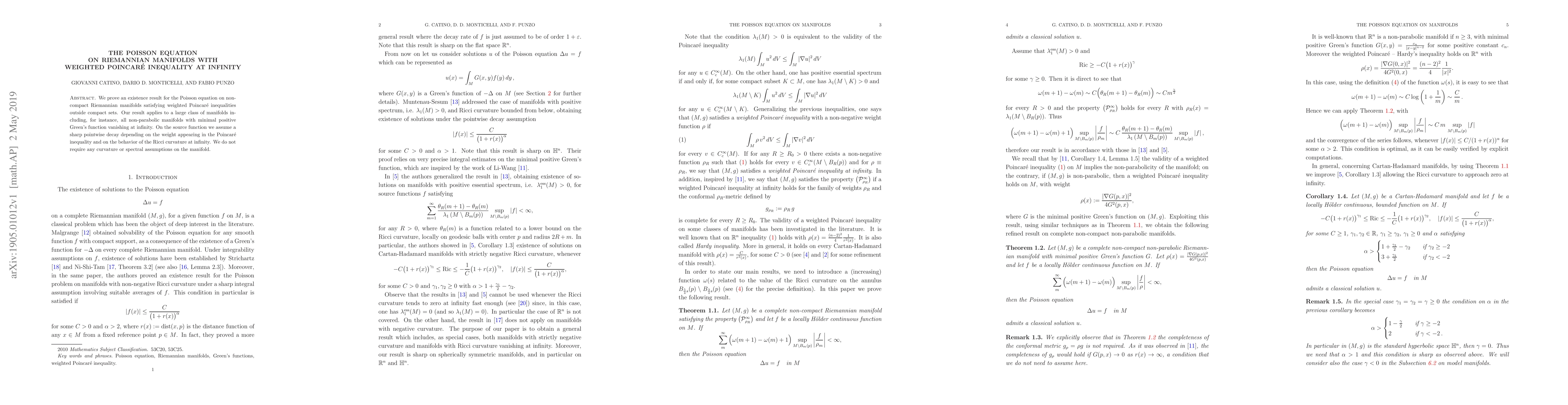 This paper establishes the existence of solutions to the Poisson equation on non-compact Riemannian manifolds that satisfy weighted Poincaré inequalities. The result applies broadly to non-parabolic manifolds with minimal positive Green's function vanishing at infinity, without requiring curvature or spectral assumptions.