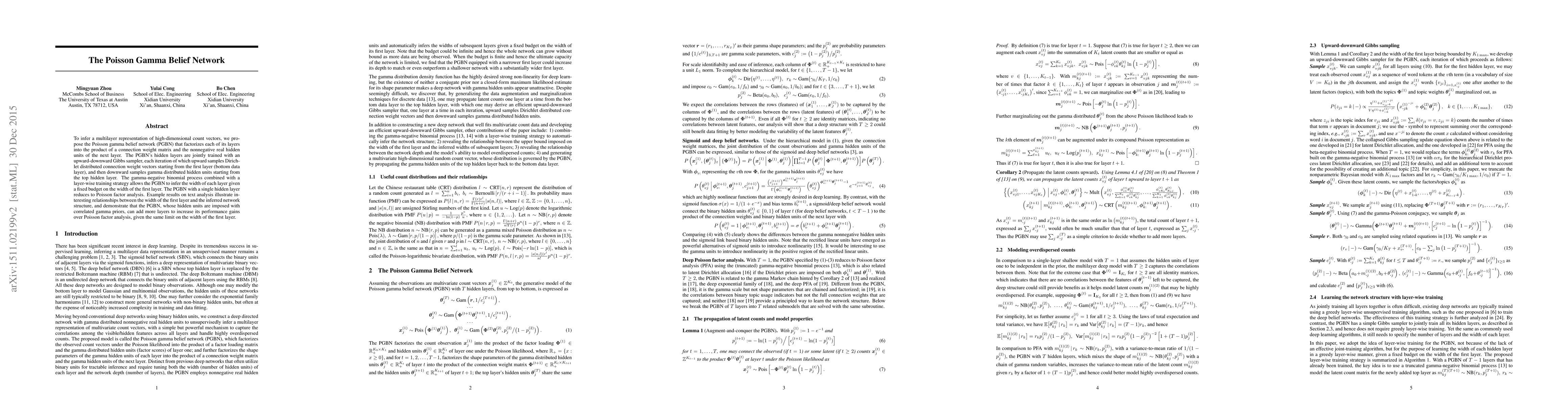 Researchers propose a new model, Poisson Gamma Belief Network (PGBN), to infer multilayer representations of high-dimensional count vectors. PGBN outperforms existing methods like Poisson factor analysis when adding more layers to the network within a fixed budget.