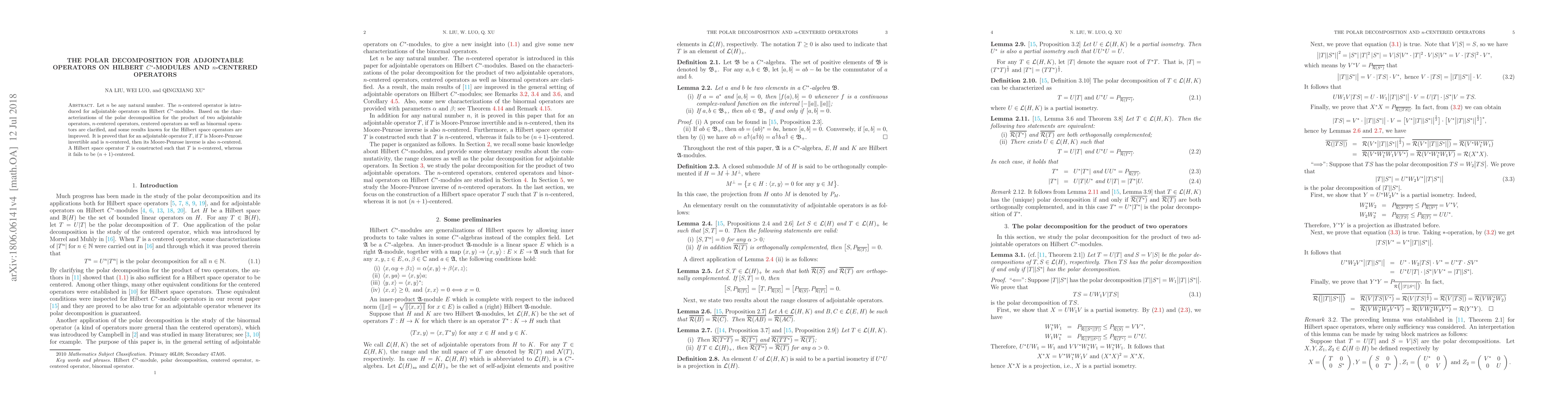 The paper presents new definitions and theorems regarding n-centered operators and their relationship with the polar decomposition, centered operators, and binormal operators, advancing the theory in the context of Hilbert C*-modules.