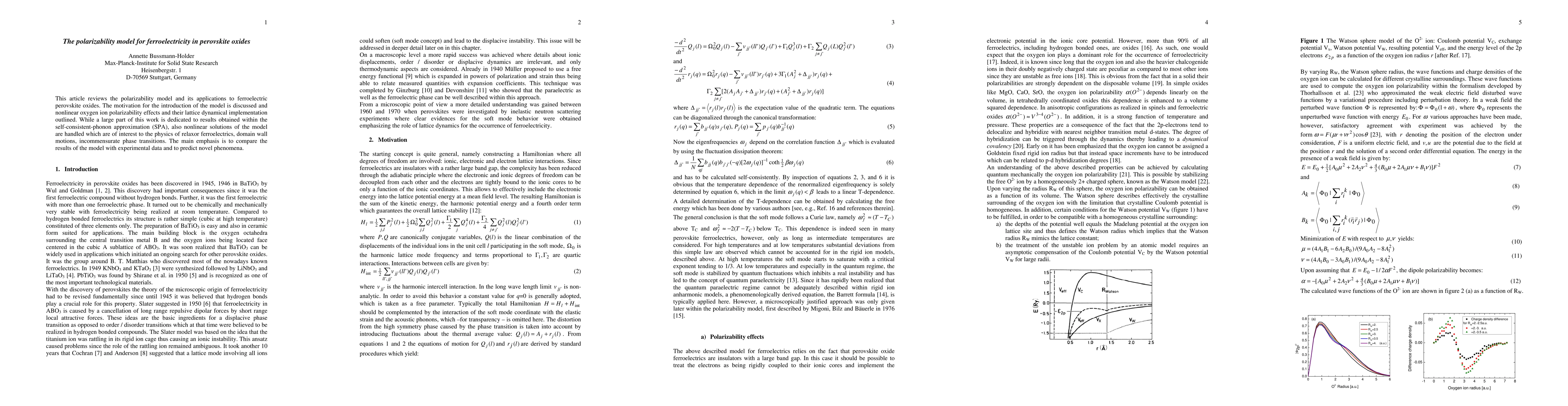 This article reviews the polarizability model and its applications to ferroelectric perovskite oxides. The motivation for the introduction of the model is discussed and nonlinear oxygen ion polarizability effects and their lattice dynamical implementation outlined. While a large part of this work is dedicated to results obtained within the self-consistent-phonon approximation (SPA), also nonlinear solutions of the model are handled which are of interest to the physics of relaxor ferroelectrics, domain wall motions, incommensurate phase transitions. The main emphasis is to compare the results of the model with experimental data and to predict novel phenomena.