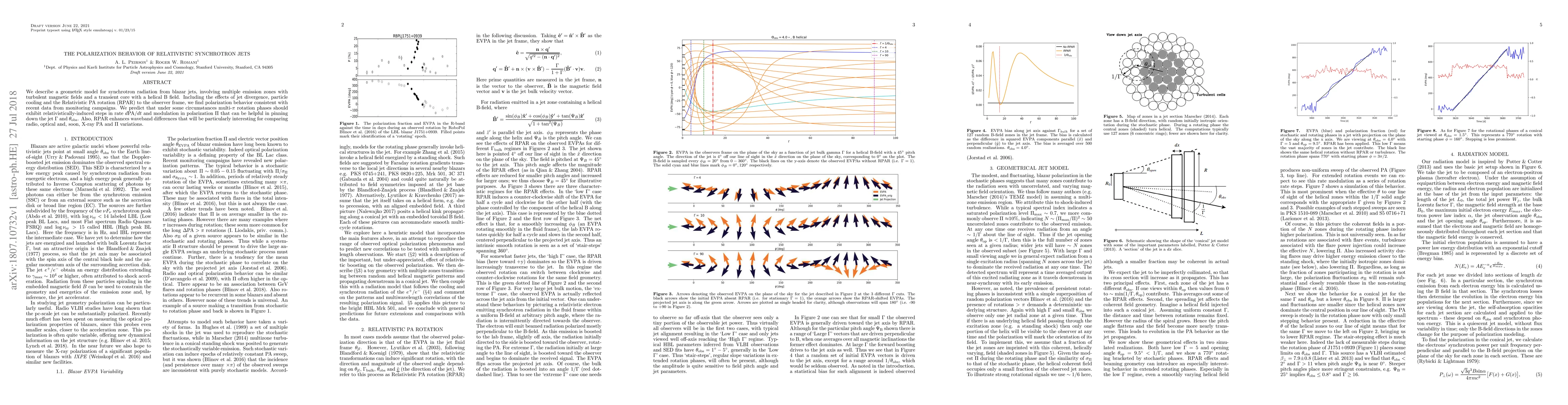 We describe a geometric model for synchrotron radiation from blazar jets, involving multiple emission zones with turbulent magnetic fields and a transient core with a helical B field. Including the effects of jet divergence, particle cooling and the Relativistic PA rotation (RPAR) to the observer frame, we find polarization behavior consistent with recent data from monitoring campaigns. We predict that under some circumstances multi-$\pi$ rotation phases should exhibit relativistically-induced steps in rate $d{\rm PA}/dt$ and modulation in polarization $\Pi$ that can be helpful in pinning down the jet $\Gamma$ and $\theta_{\rm obs}$. Also, RPAR enhances waveband differences that will be particularly interesting for comparing radio, optical and, soon, X-ray PA and $\Pi$ variations.