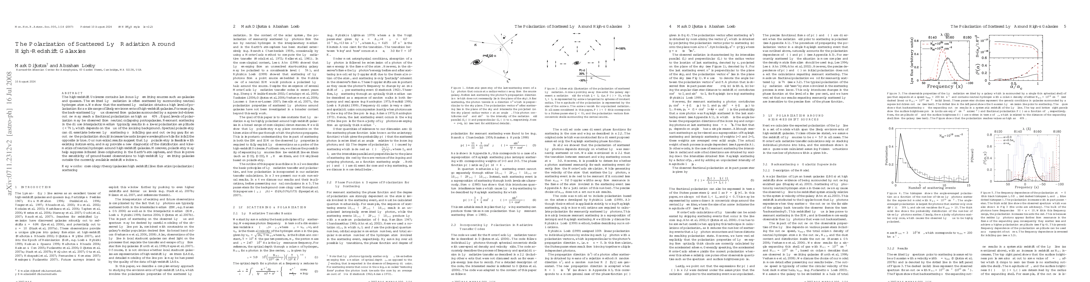 This paper investigates the polarization of scattered Lyman Alpha (Lya) radiation from high-redshift galaxies, finding that it can reach high levels (~40%) in environments with superwind-driven outflows. Spectral polarimetry offers a new diagnostic tool for understanding the distribution and kinematics of neutral hydrogen around these galaxies.
